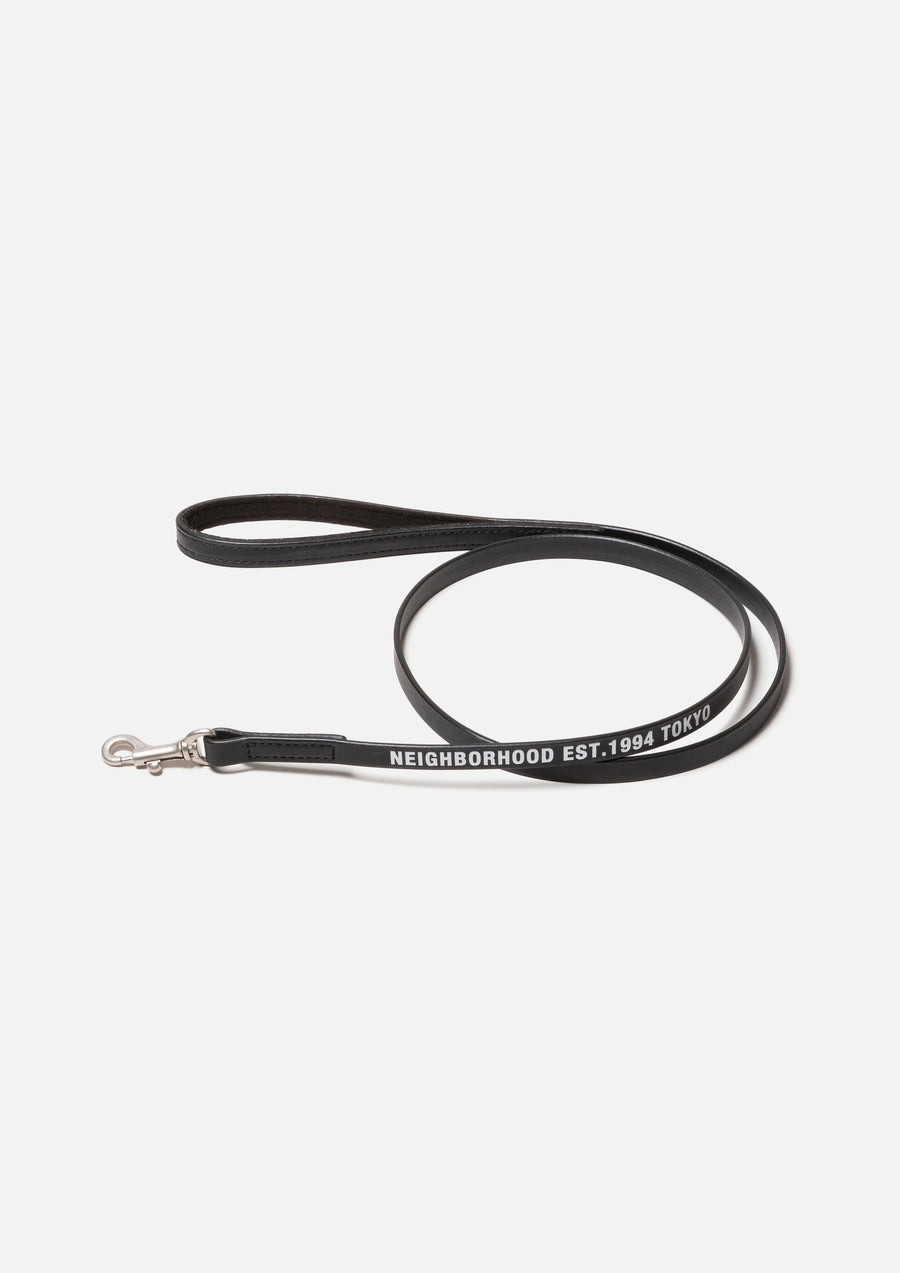 A narrow-type dog leash made from cowhide leather. Crafted from European double-butt leather, tanned slowly using the traditional "Vacchetta method" from Tuscany. Features a foil-stamped logo on the strap and includes a brand tag. Width: 15mm. Total length: 1250mm.