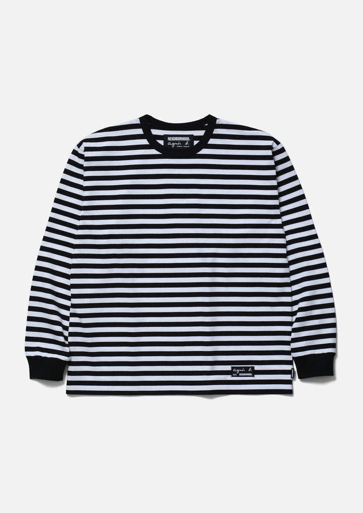 Striped tote bag based on an agnès b. model, made from cotton canvas that develops character with use. Front print features Agnès Troublé’s hand-written dual logos. Interior hanging pocket with brand tag.