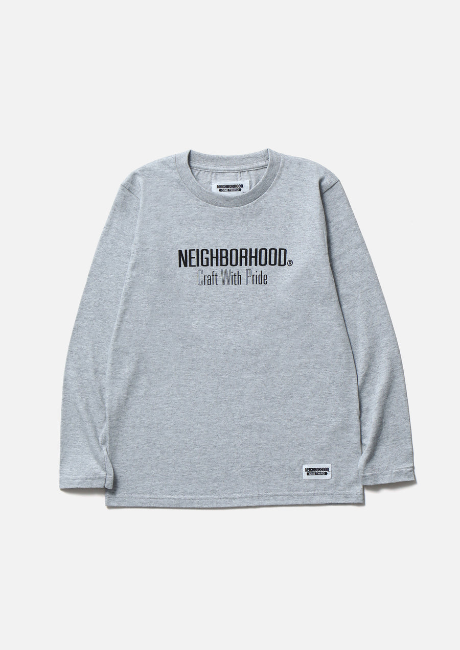 A long-sleeve T-shirt made of a 5.6oz heavyweight body. Printed logo on the front. A name tag is placed on the left hem.