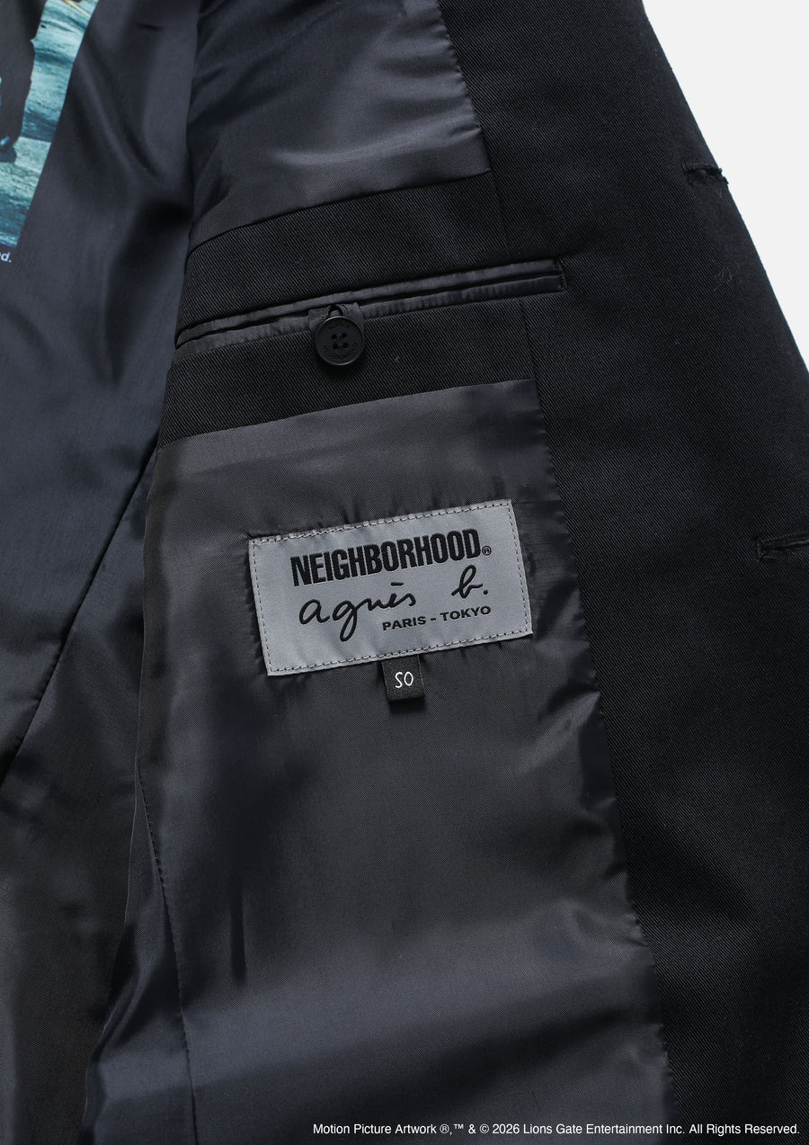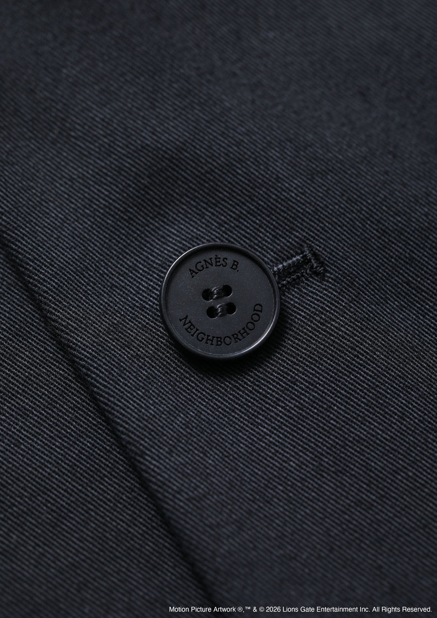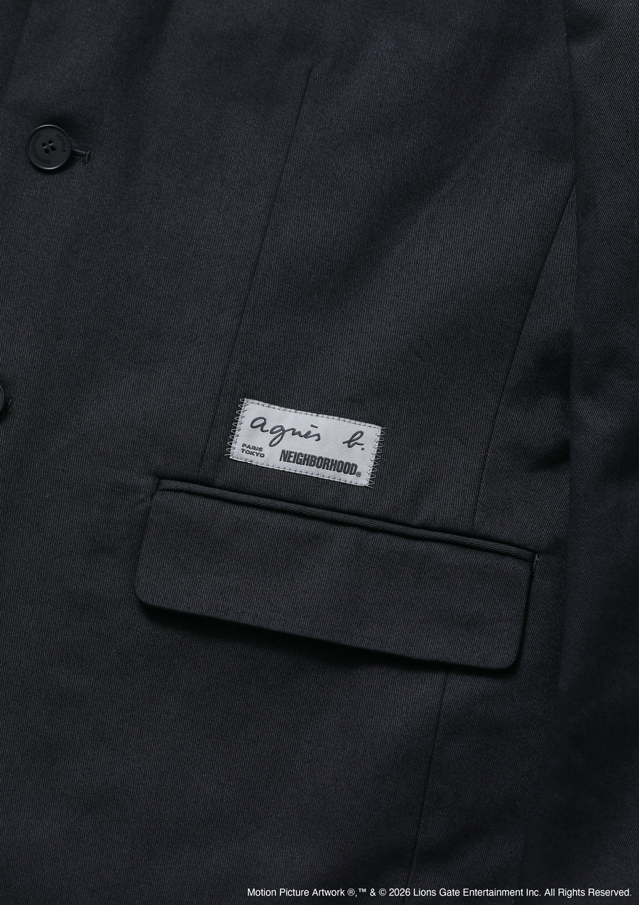 A collaboration jacket based on agnès b.’s iconic black suit—one of the brand’s signaturepieces, long favored by artists in the film and music scenes. Inspired by the suits worn by thecharacters in RESERVOIR DOGS (Lionsgate), this collection brings cinematic attitude into acontemporary wardrobe. Expertly tailored in 100% cotton, it offers versatility for everything from everyday wear to special occasions.