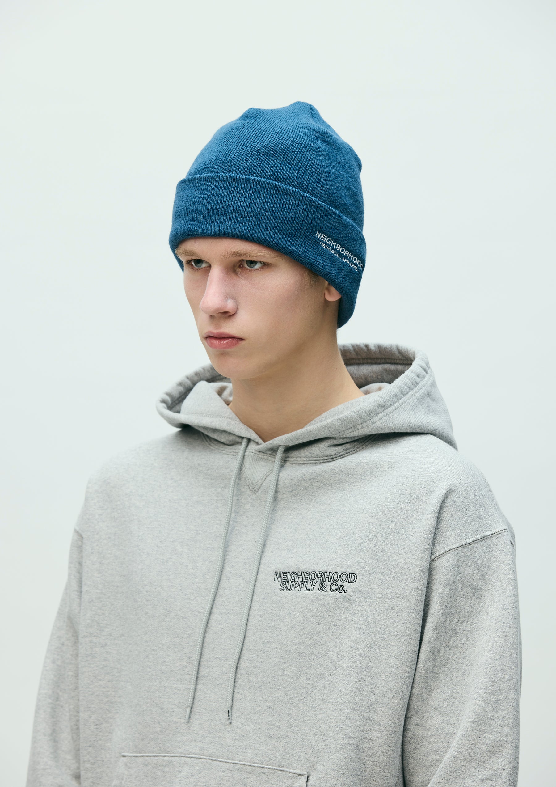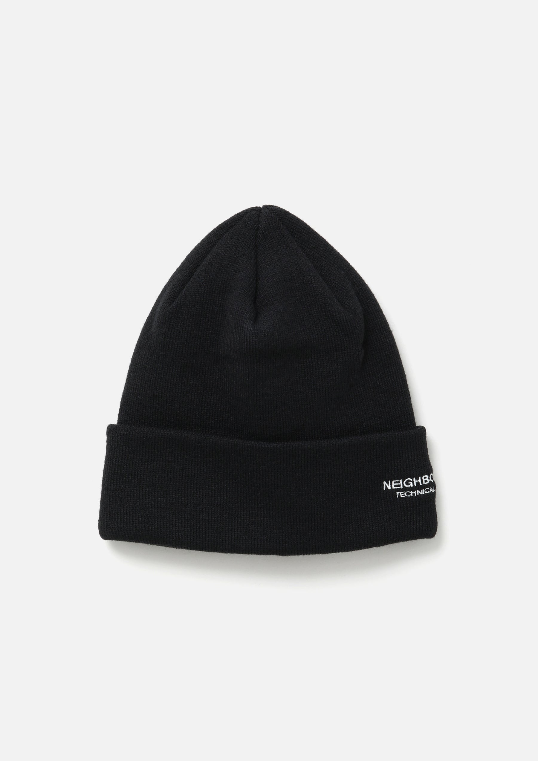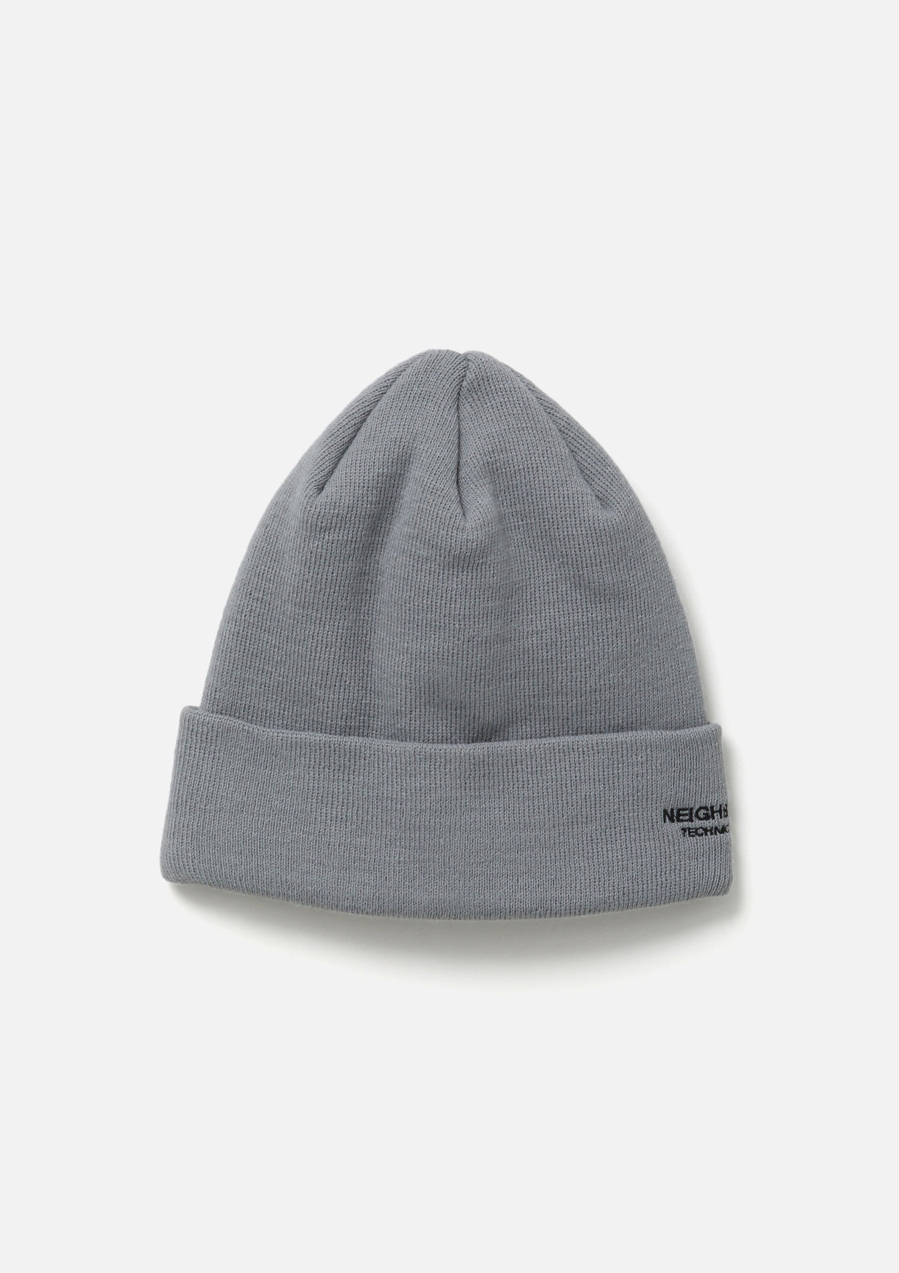 Beanie knit from acrylic yarn. Features a logo embroidery on the left side.