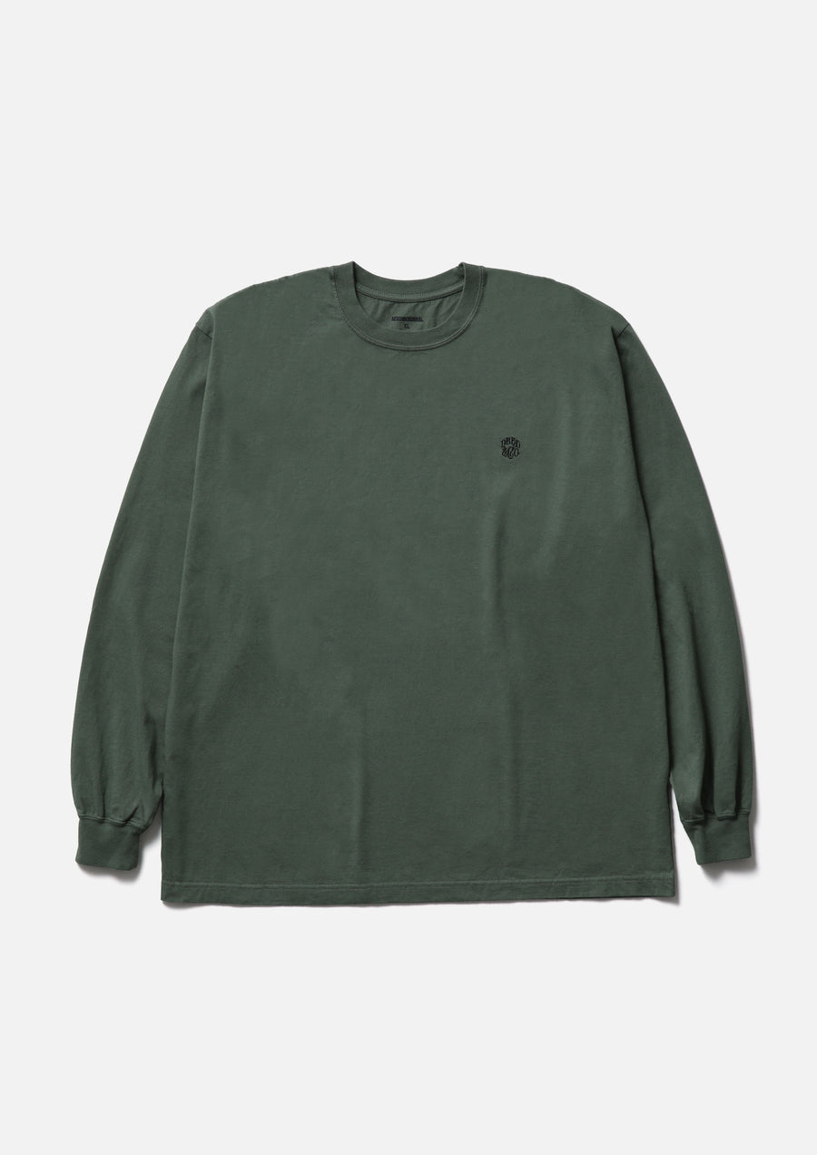 A long-sleeve T-shirt made of an original cotton jersey body. Embroidered logo on the left chest. One-wash finish.