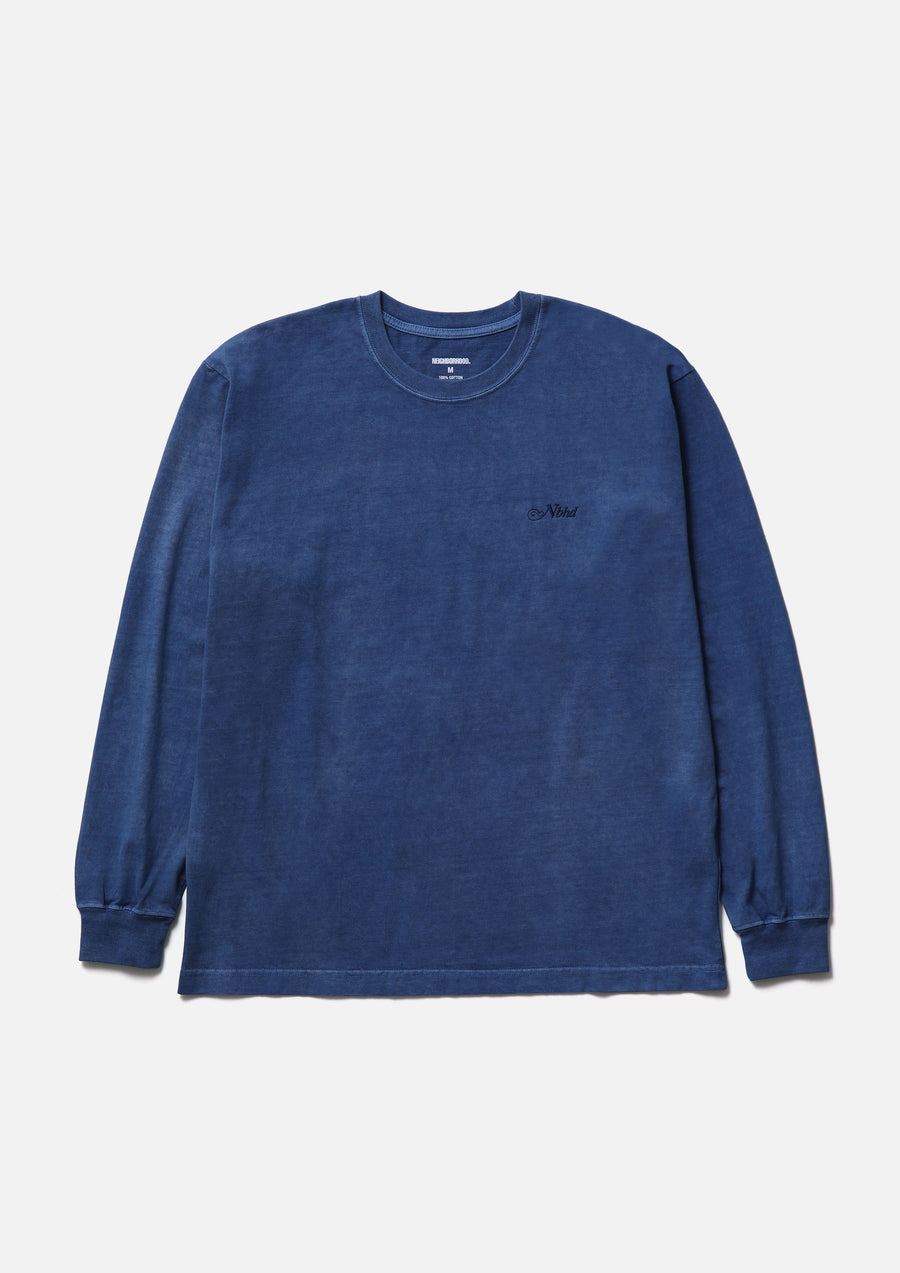 A long-sleeve T-shirt made of an original cotton jersey body, pigment-dyed for a unique finish. Embroidered logo on the left chest. One-wash finish.