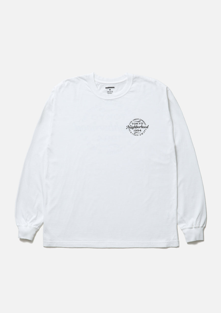 Long-sleeve T-shirt made from an original cotton jersey body. Features printed graphics on the left chest and back. Completed with a one-wash finish.
