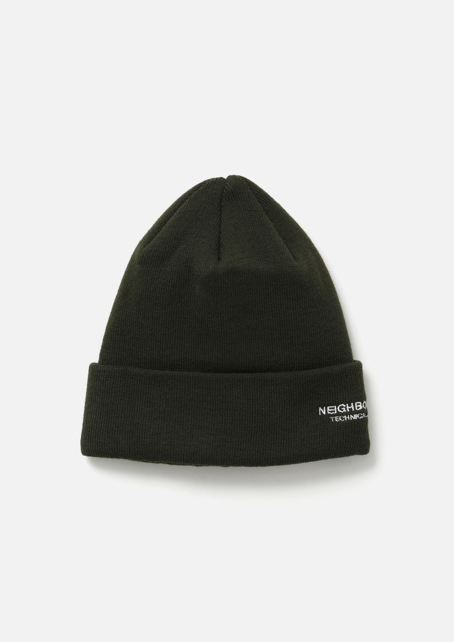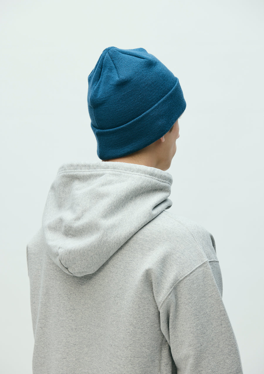Beanie knit from acrylic yarn. Features a logo embroidery on the left side.