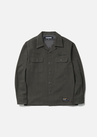 HERRINGBONE OPEN COLLAR SHIRT LS