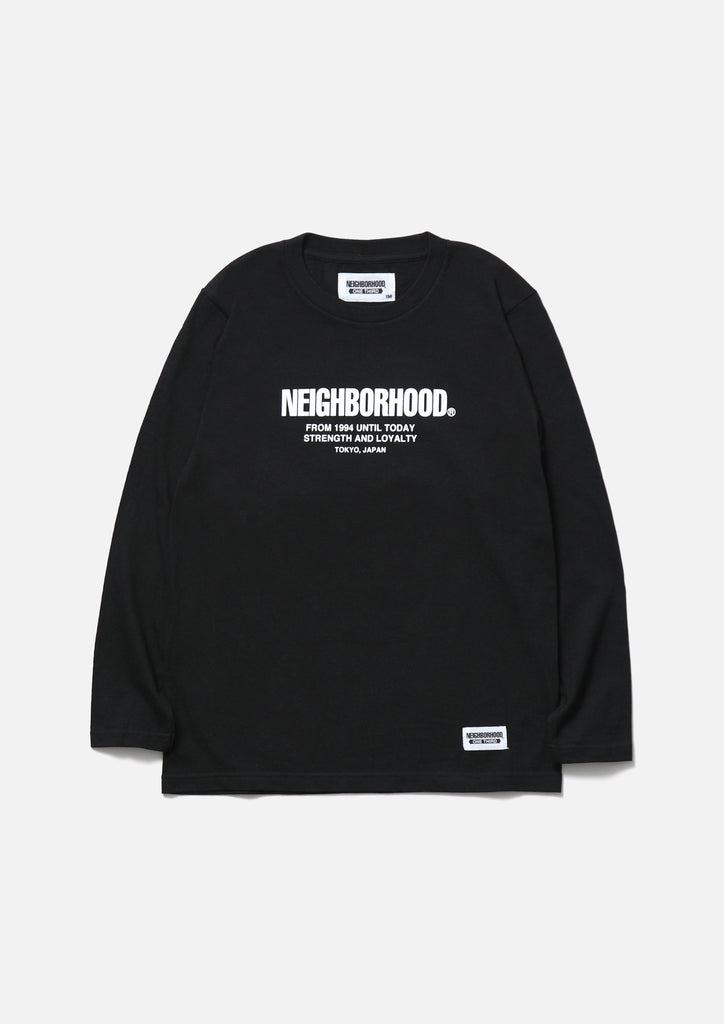 A long-sleeve T-shirt made of a 5.6oz heavyweight body. Printed logo on the left chest and sleeve. A name tag is placed on the left hem.