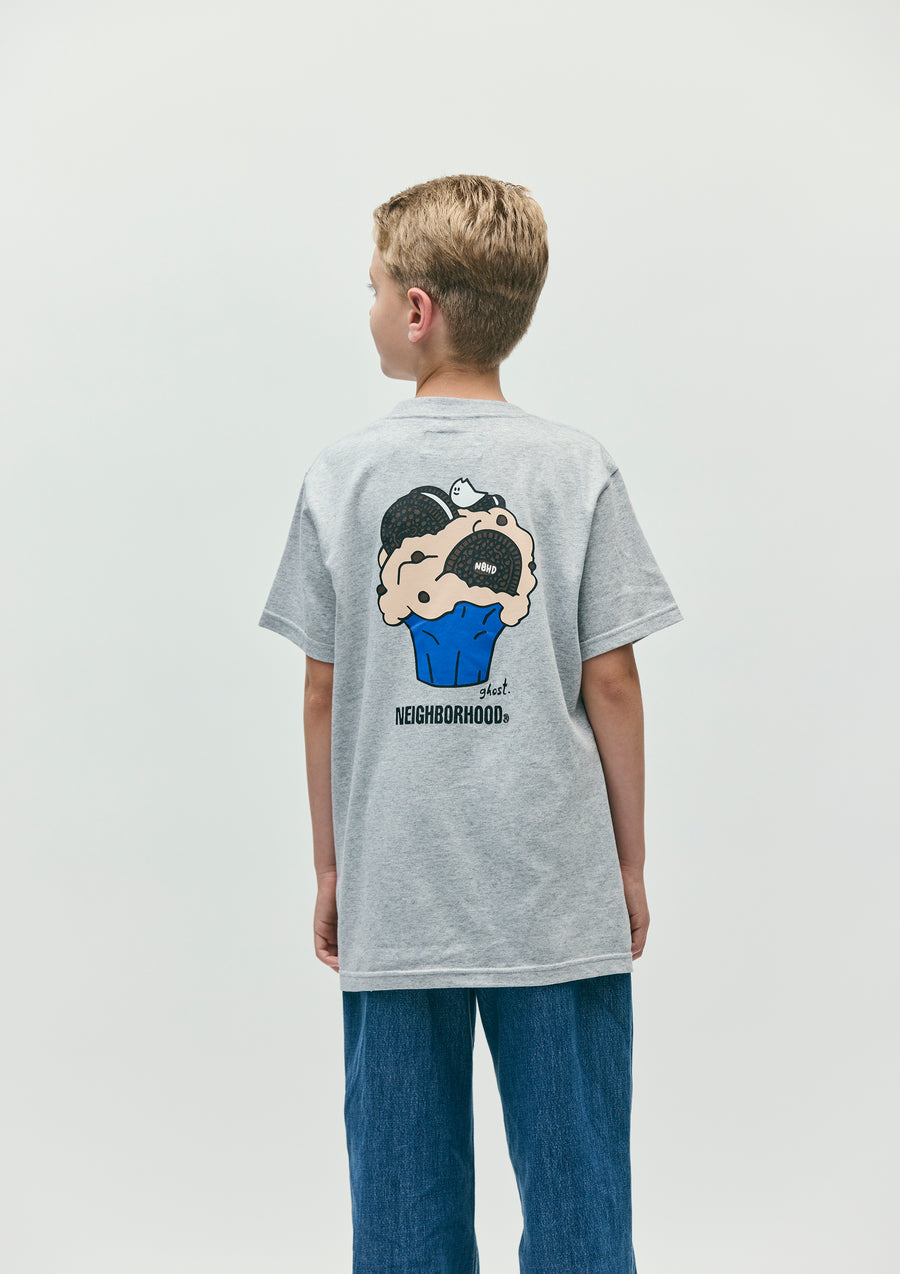 A short-sleeve T-shirt made of a 5.6oz heavyweight body. Features a graphic print by ghost. on the front. A name tag is placed on the left hem.