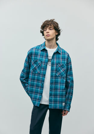 HOMBRE CHECK BAND COLLAR SHIRT LS