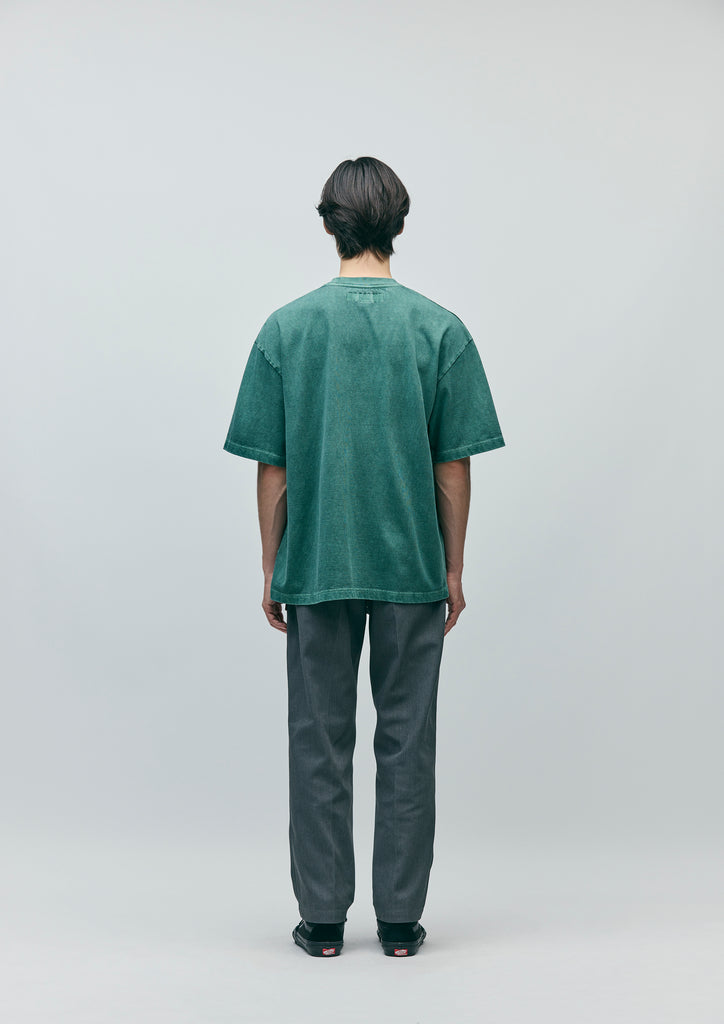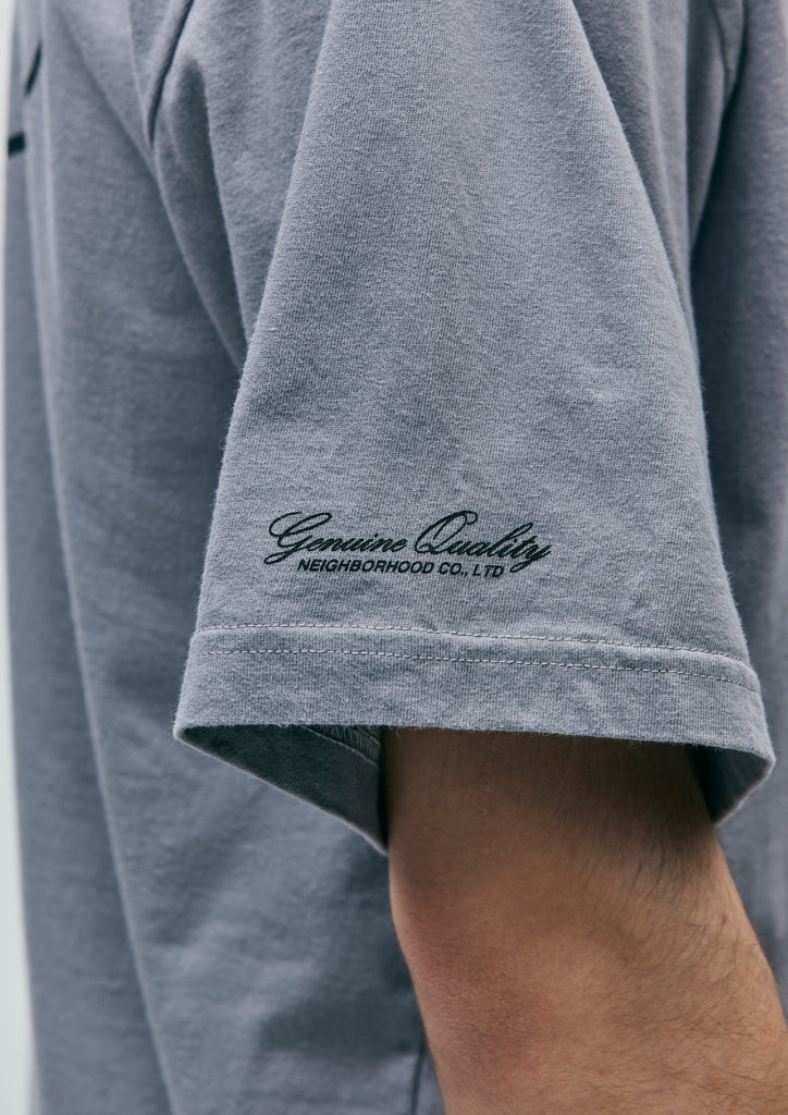 A half-zip shirt made from hickory stripe fabric with organic cotton for the warp. Maintains classic work shirt details with a chest pocket featuring a pen holder. Logo patch on the left chest. Equipped with original four-hole buttons, a brand tag on the left hem and side seam. One-wash finish.
