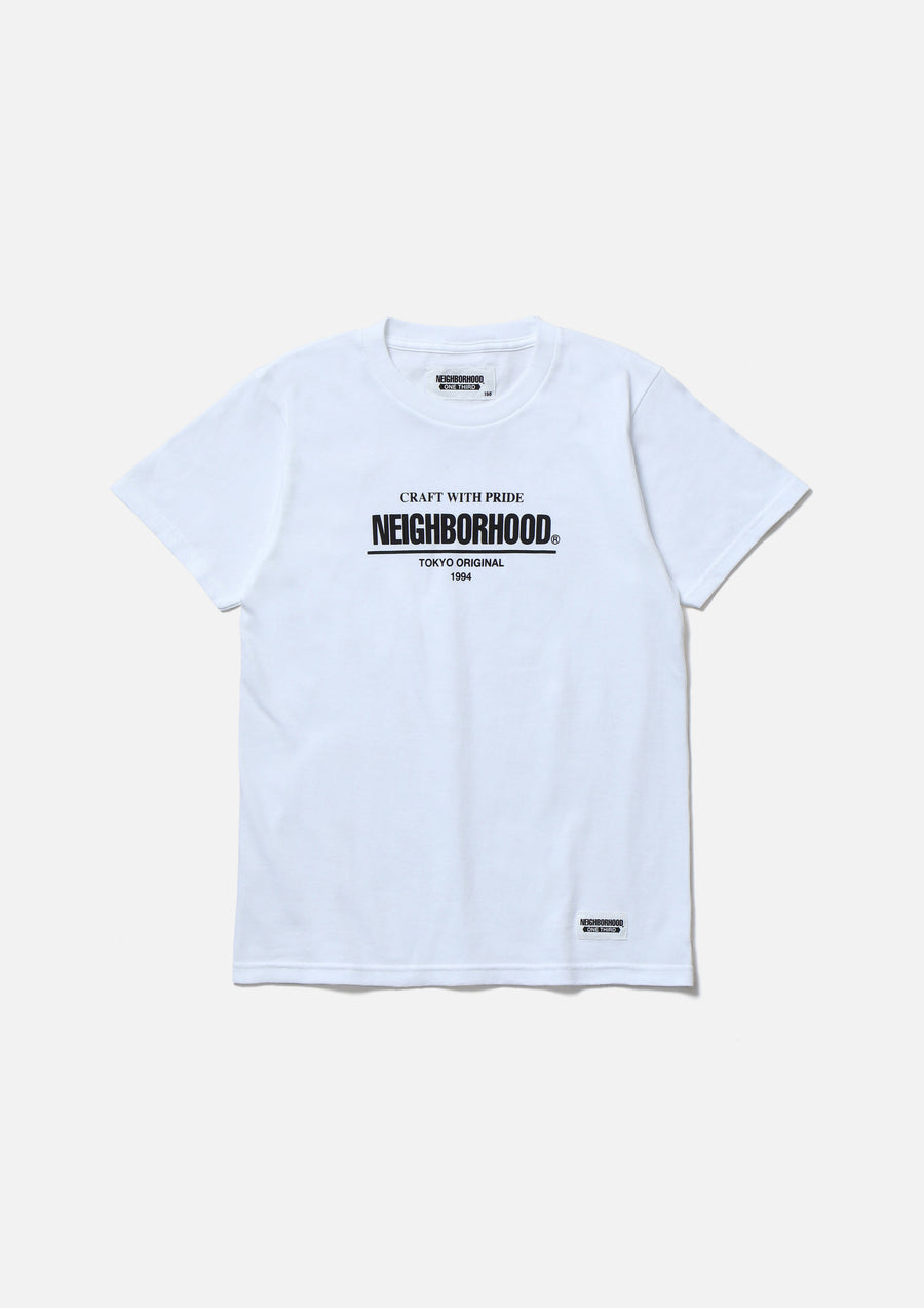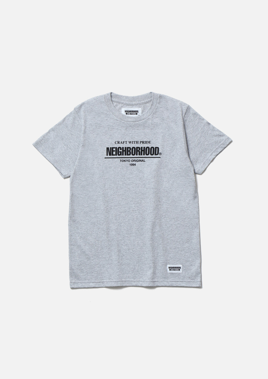 A short-sleeve T-shirt made of a 5.6oz heavyweight body. Printed logo on the front. A name tag is placed on the left hem.
