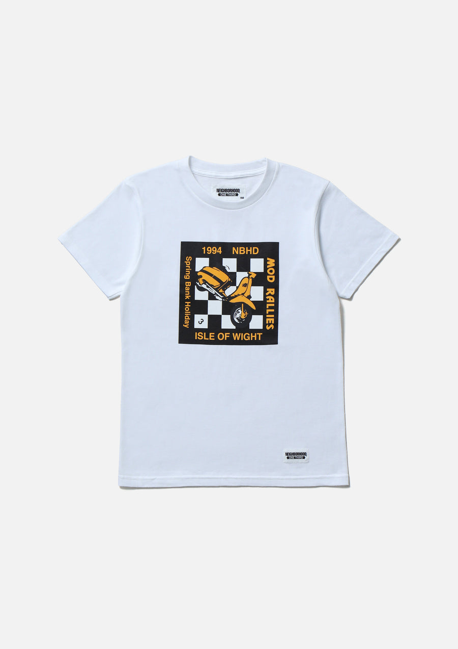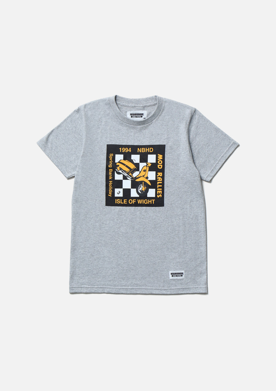 A short-sleeve T-shirt made of a 5.6oz heavyweight body. Graphic print on the front. A name tag is placed on the left hem.