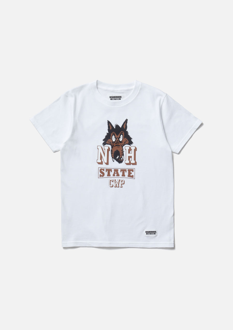 A short-sleeve T-shirt made of a 5.6oz heavyweight body. Graphic print on the front. A name tag is placed on the left hem.