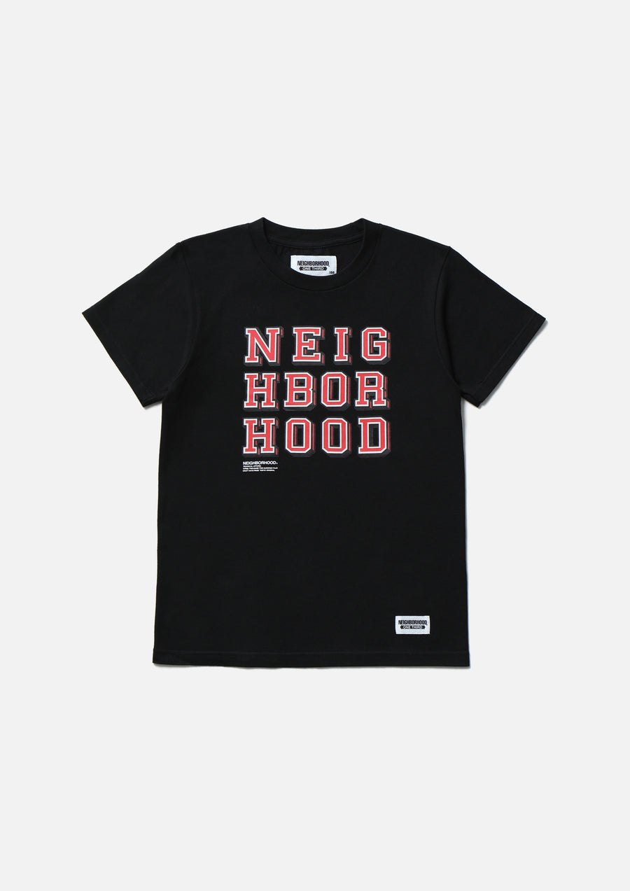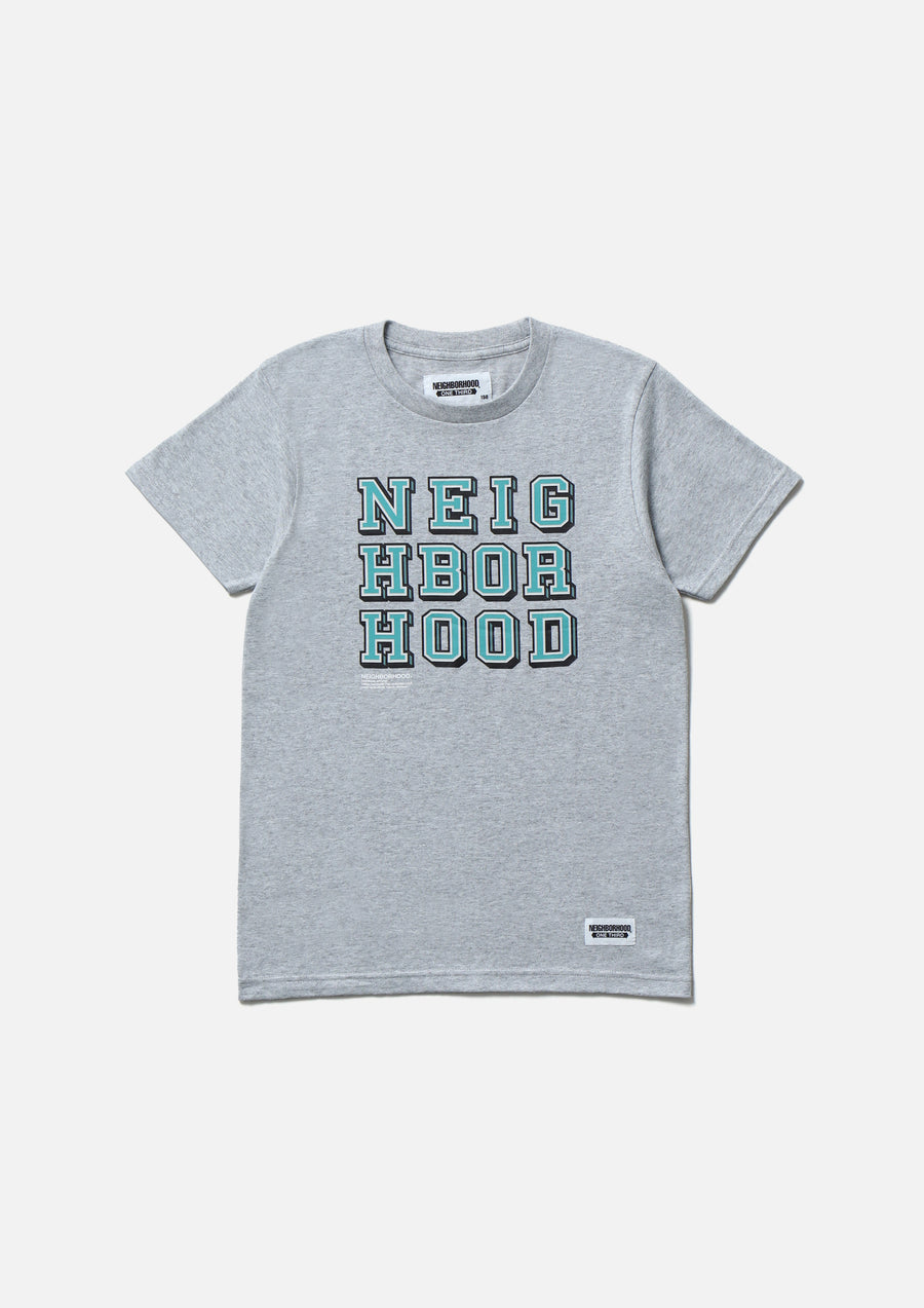 A short-sleeve T-shirt made of a 5.6oz heavyweight body. Graphic print on the front. A name tag is placed on the left hem.
