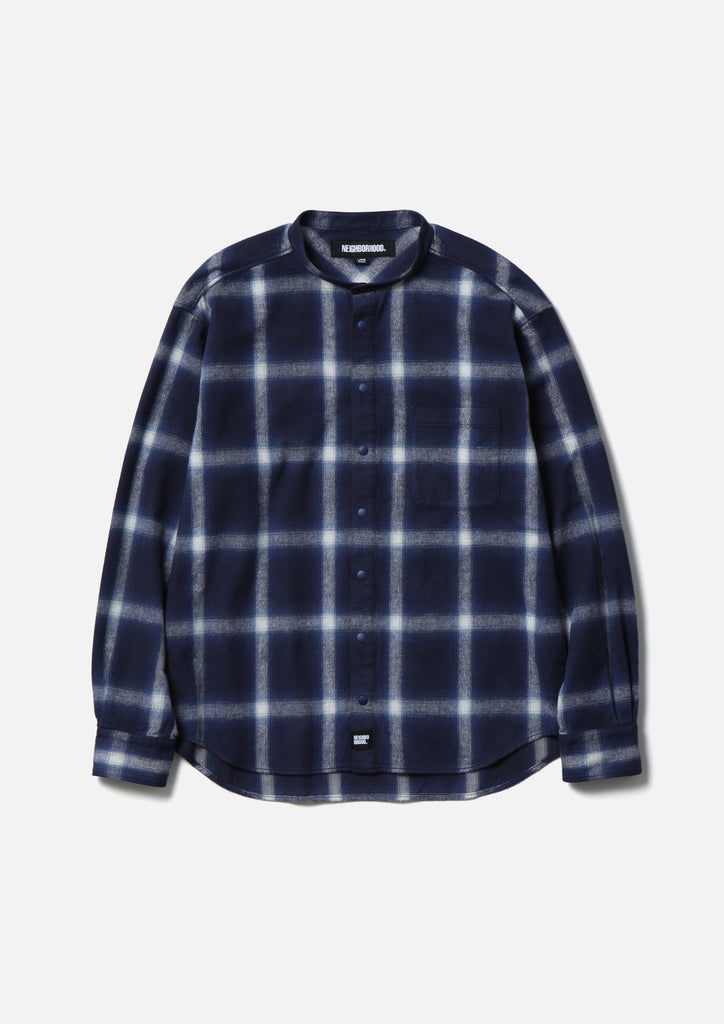 HOMBRE CHECK BAND COLLAR SHIRT LS