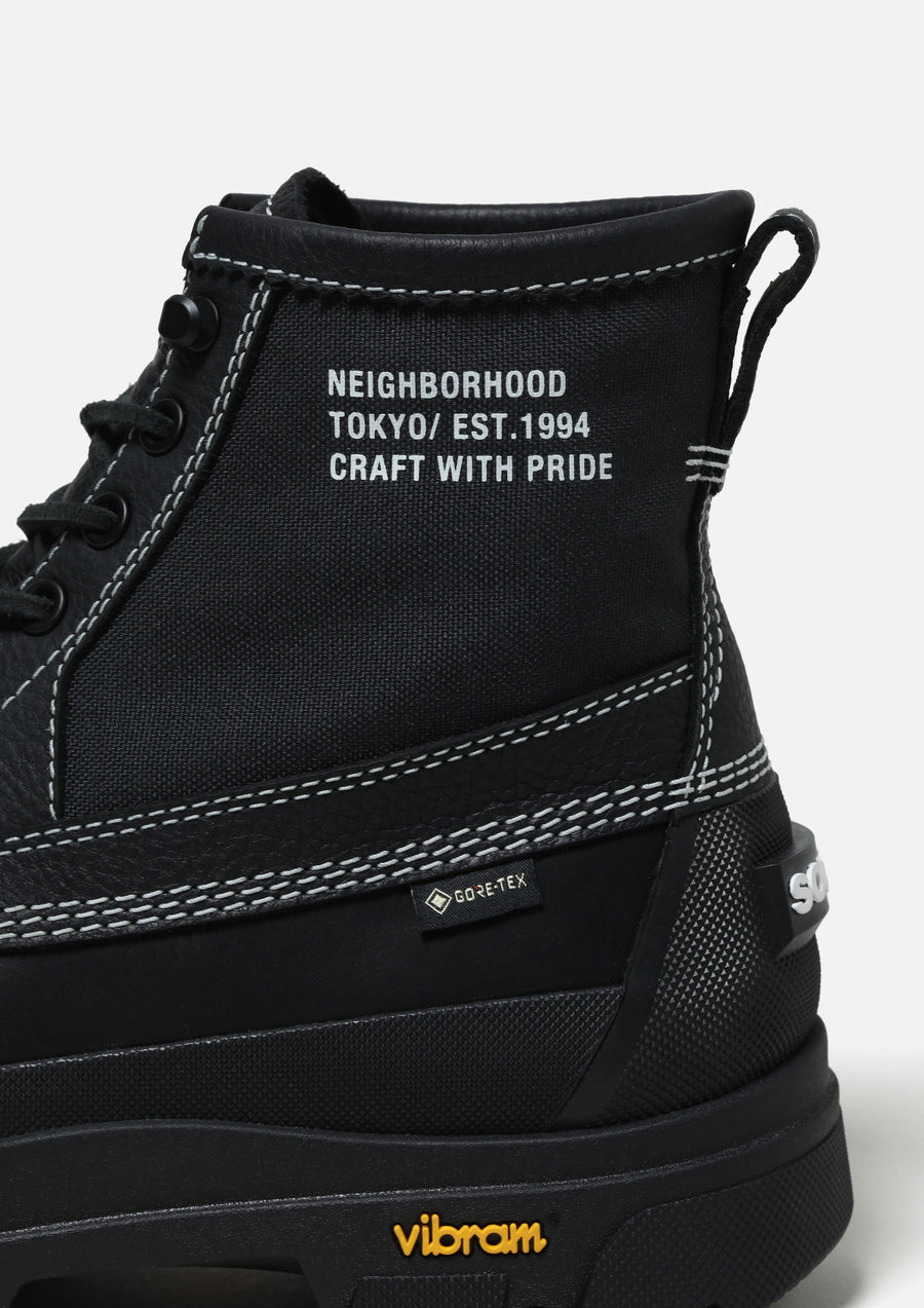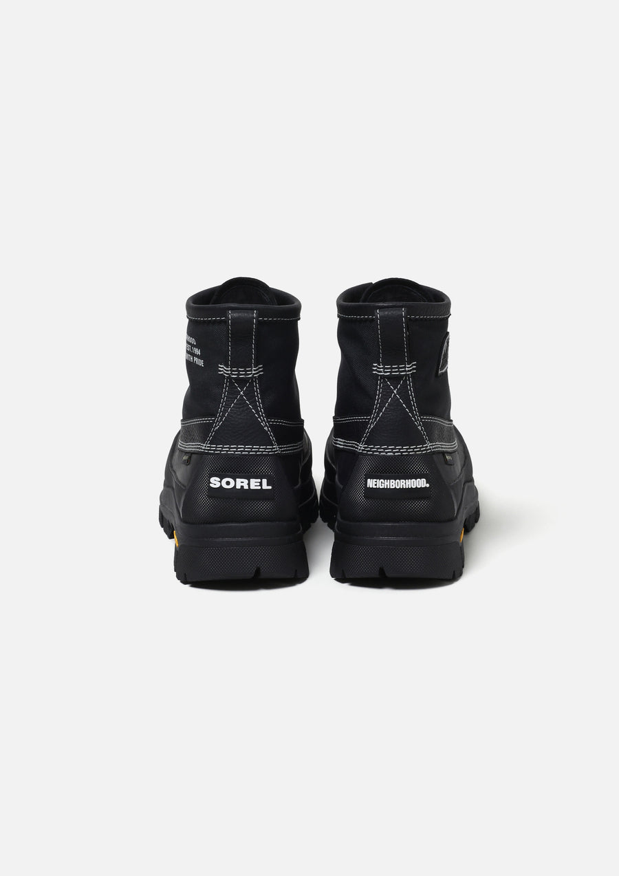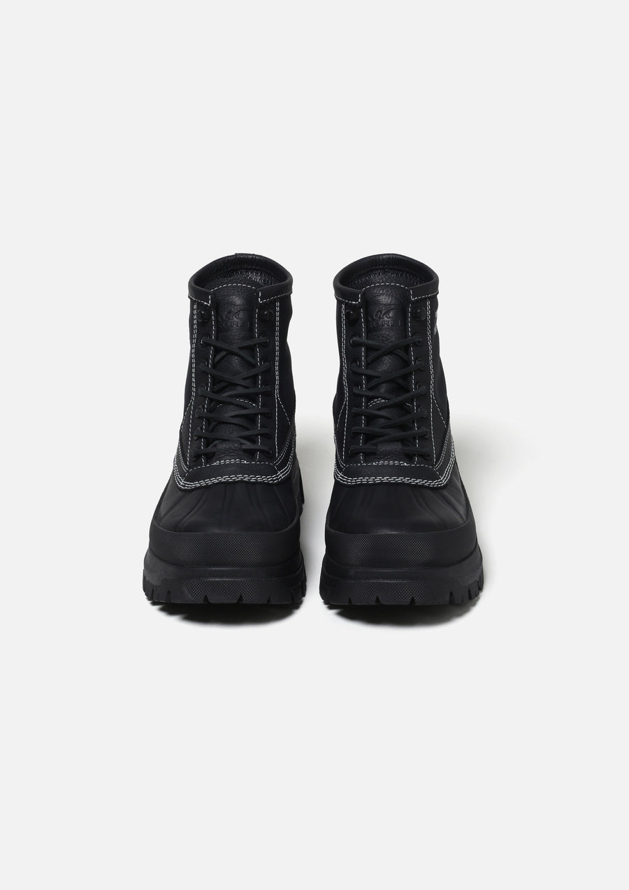 A collaborative item with SOREL, the Canadian-born heritage brand known for setting the global standard in winter boots for over half a century since 1962. Designed with a concept of mountain style × city wear, this special edition of the "DAYSTORM HORIZON GTX" winter boot balances rugged durability with comfort. The upper pattern has been modified and features exclusive logo prints, leather patches, and rubber patches from both brands. Constructed with Gore-Tex for full waterproof protection. Equipped with a removable Ortholite insole and a molded outsole featuring XS TREK EVO Vibram compound.