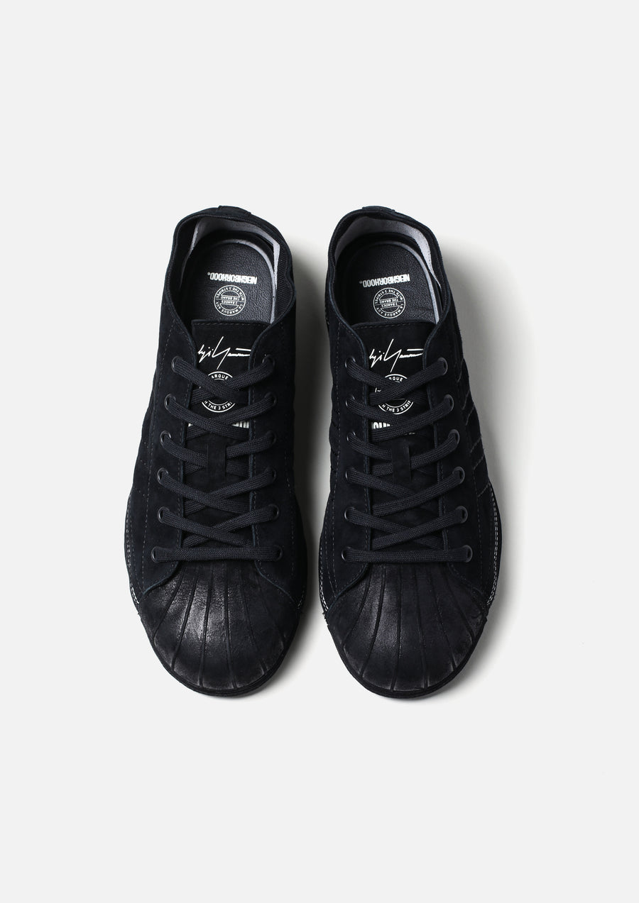 A collaboration with “Y-3,” based on the Y-3 NIZZASTAR LO, a fusion of the adidas Superstar and Nizza silhouettes. Built on the Y-3 NIZZA midsole structure, it features a suede upper extending to the outsole and the iconic shell toe. Finished with a logo print on the tongue and collaboration-specific heel patches and insoles, expressing original and distinctive detailing.