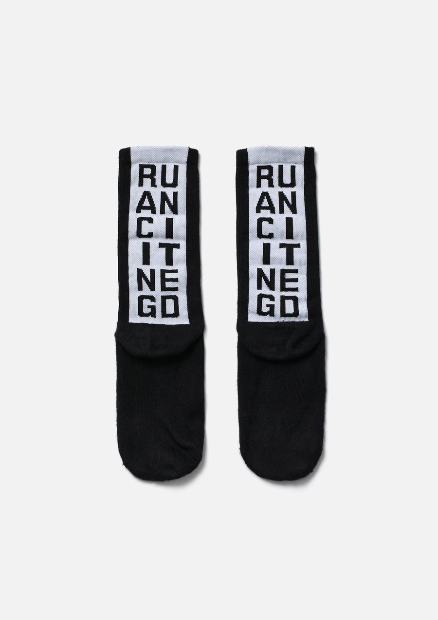 Ribbed socks featuring jacquard-knit logos and graphics. A collaboration with “Y-3,” the sports fashion brand that fuses adidas’s advanced technical expertise and functionality with Yohji Yamamoto’s design sensibility.