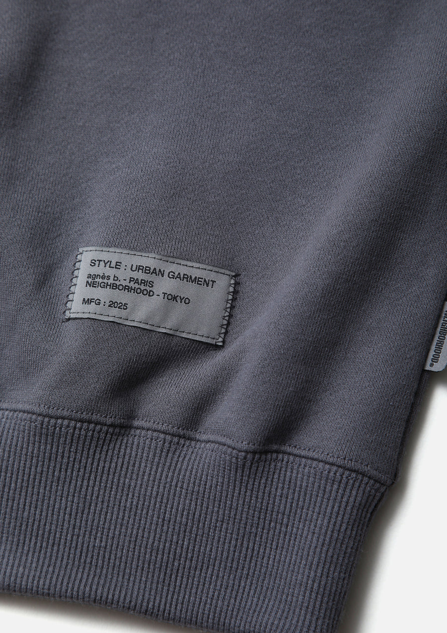 Pullover sweatshirt based on an agnès b. staple, in cotton fleece. Dual-logo prints at the front and back. Ribbed cuffs and hem. Brand tags at the left hem and side seam. Relaxed silhouette.