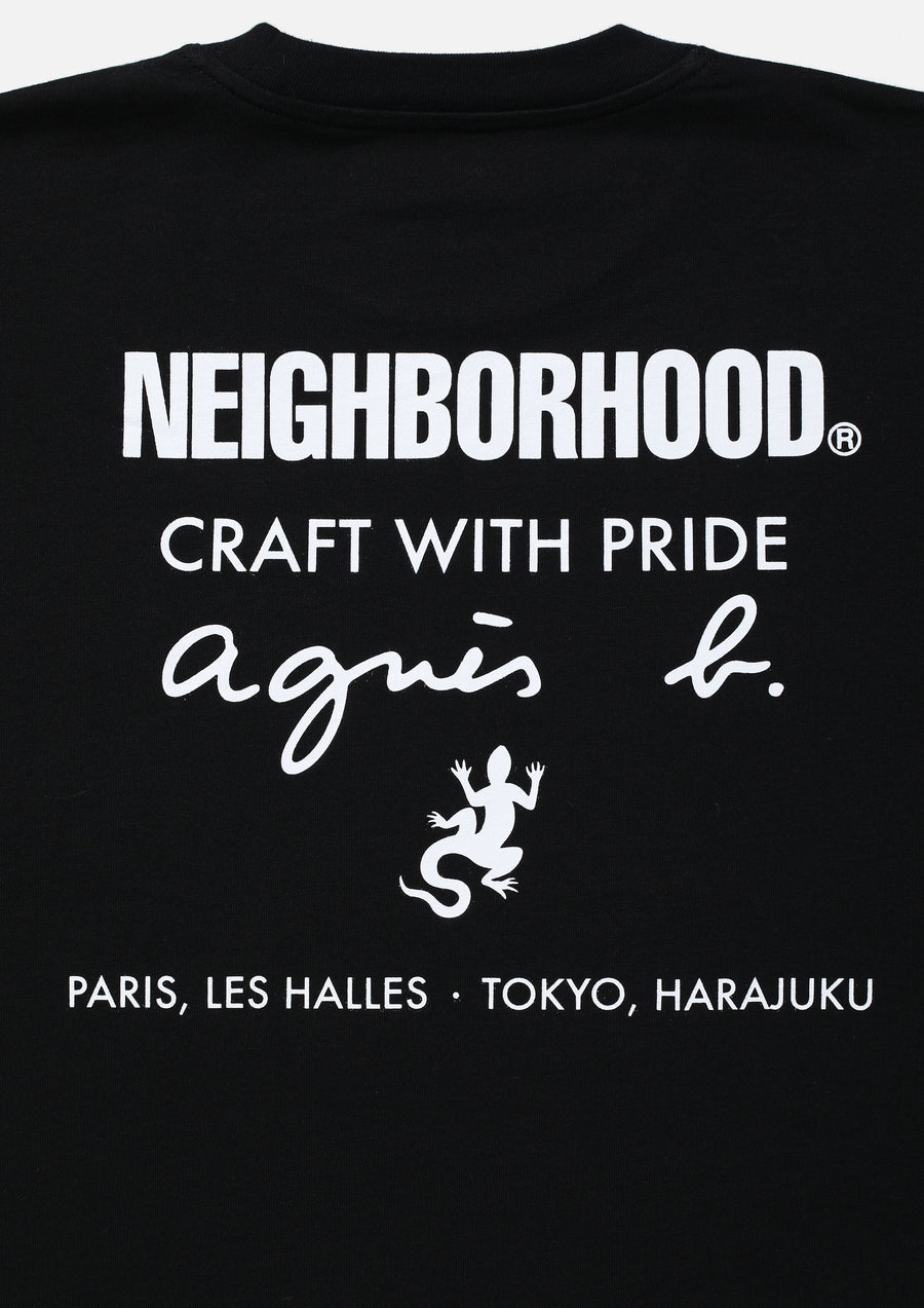 Short-sleeve tee using agnès b.’s original body, printed with both brands’ logos. Collaboration with agnès b.
