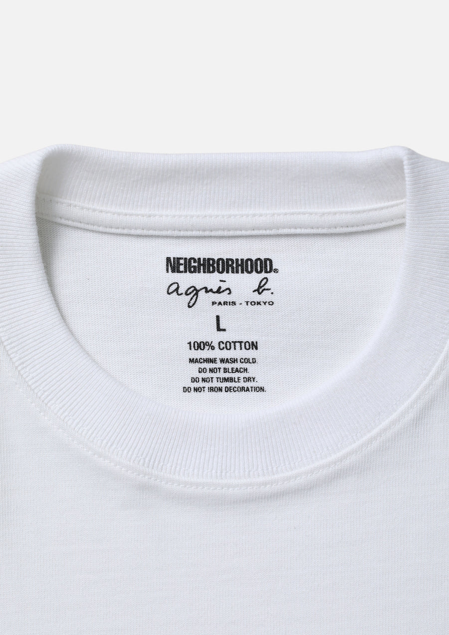 Short-sleeve tee cut from a heavier jersey with a classic agnès b. silhouette. The left hem features a brand tag in the signature stripe design.
