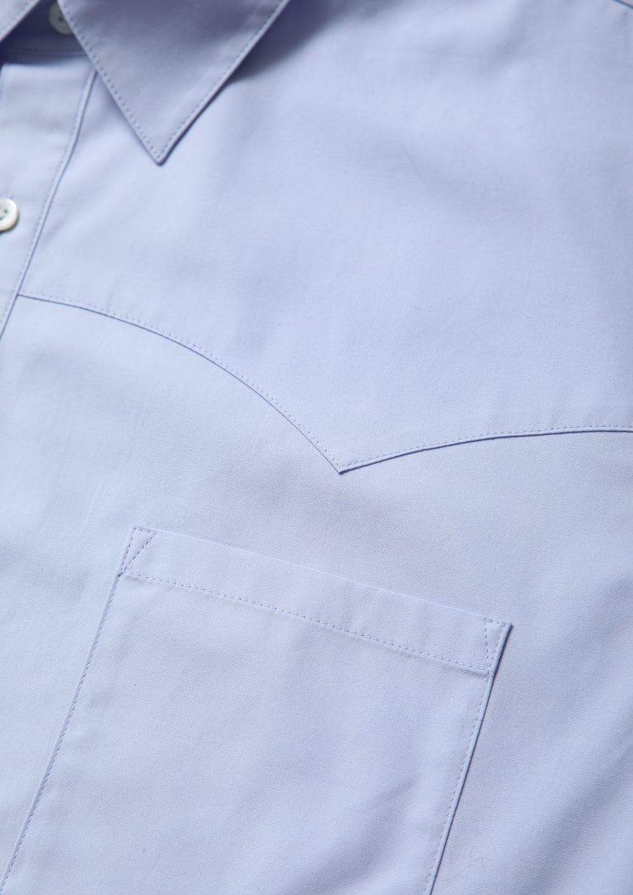 Western shirt made from 100% cotton with careful stitchwork. Features cuffed sleeves, a back yoke, and original buttons. Patch pocket at the left chest. Brand tag at the left hem and side seam. Collaboration with agnès b.