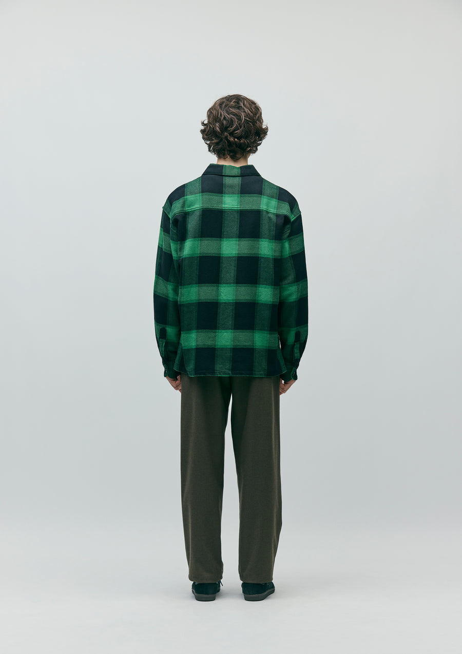A check shirt with an original pattern, using thick yarn and brushed only on the inside. Maintains classic flannel shirt details. Equipped with original four-hole buttons, a brand tag on the left hem and side seam. One-wash finish.