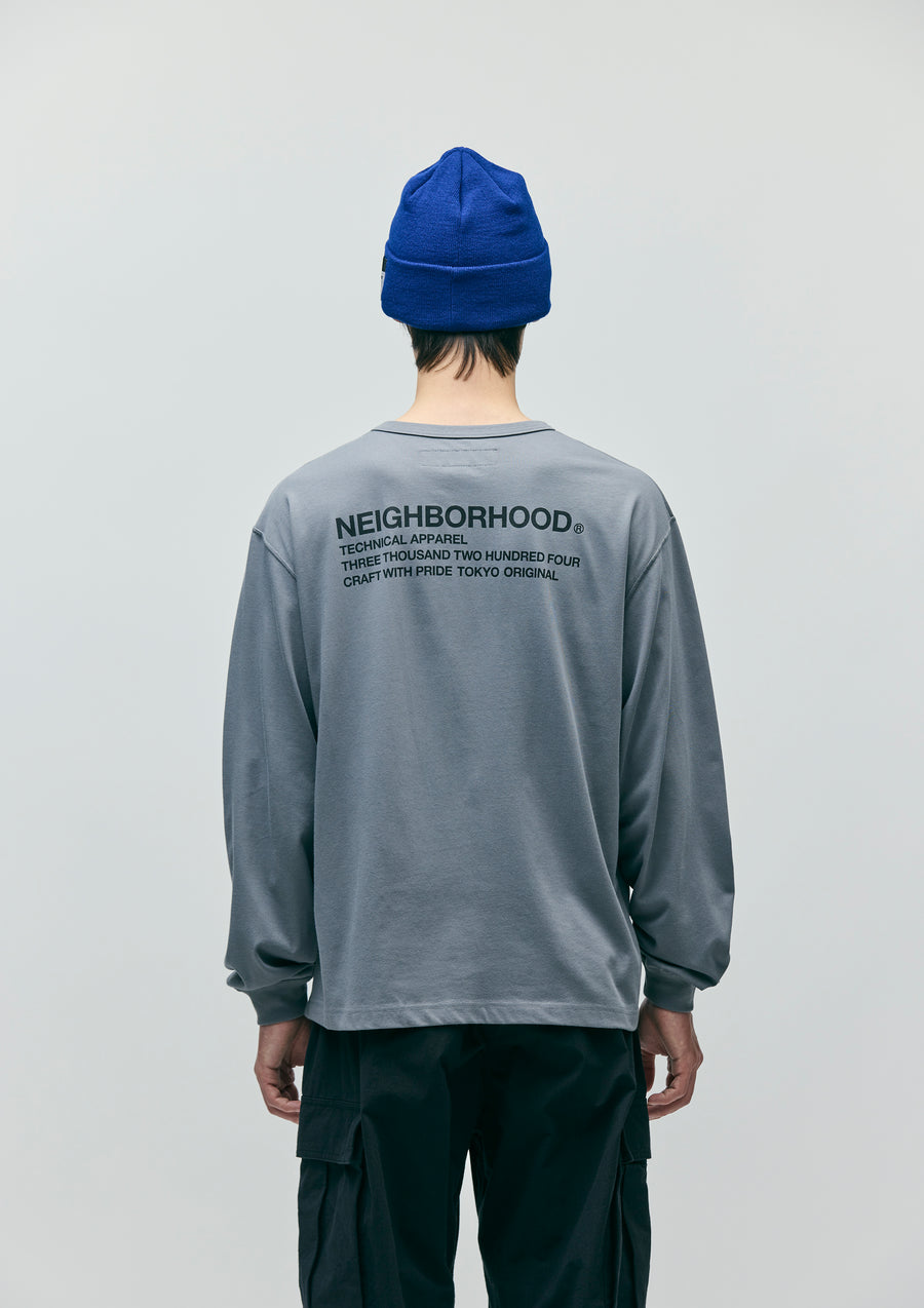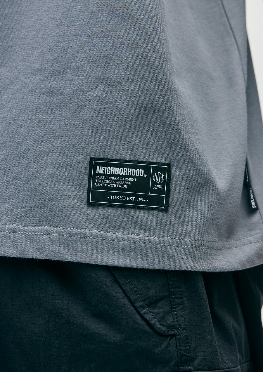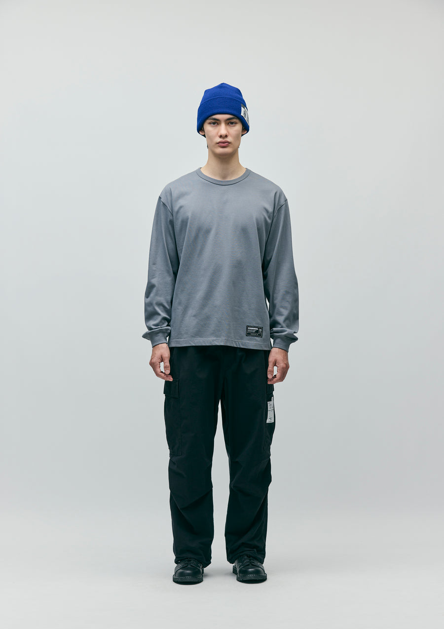 A crewneck cut-and-sew shirt made from SSHELTECH Warm® fleece fabric, offering light absorption for heat generation, lightweight comfort, and UV protection. Printed logo on the back. Brand tag on the left sleeve and side seam.