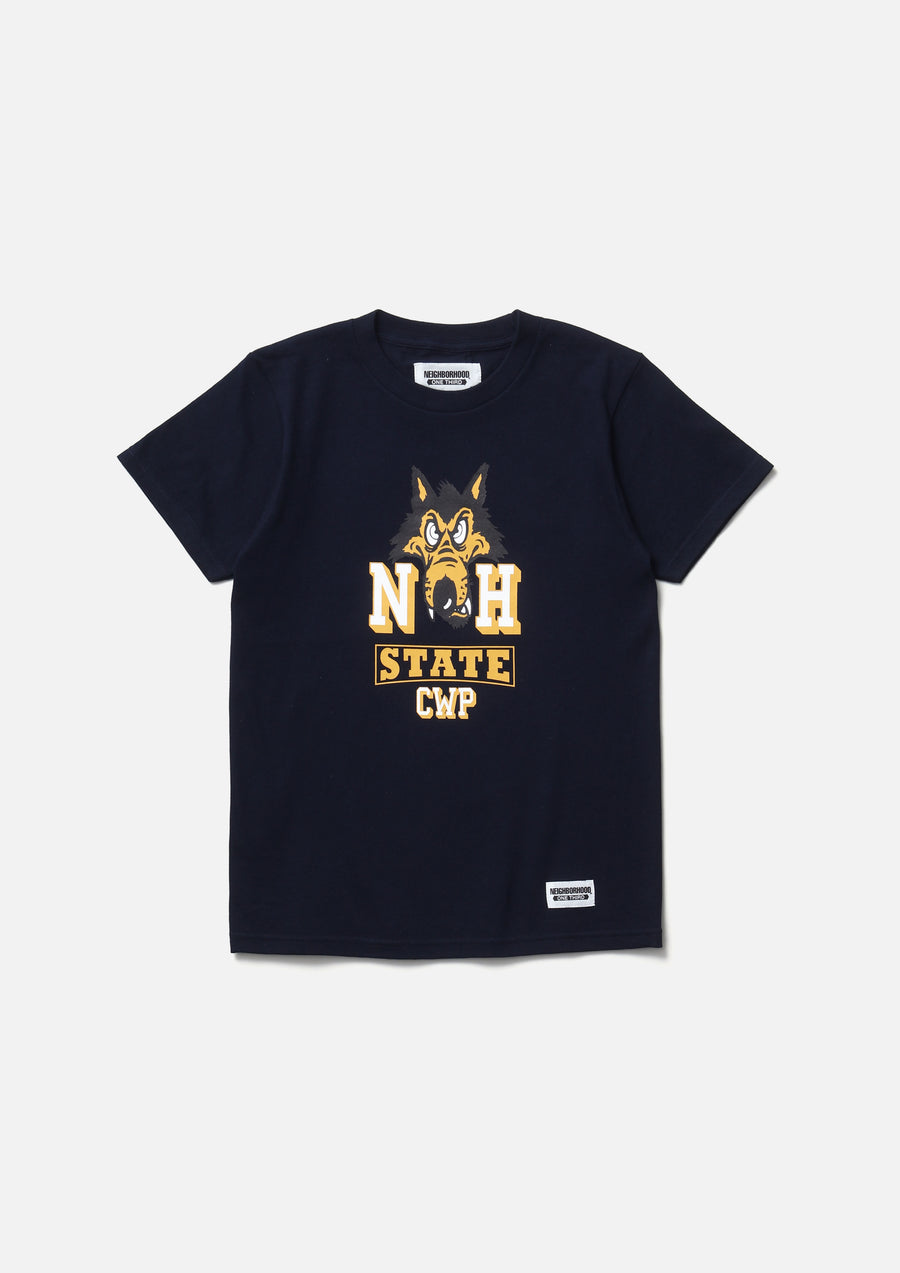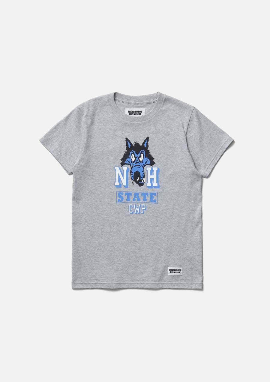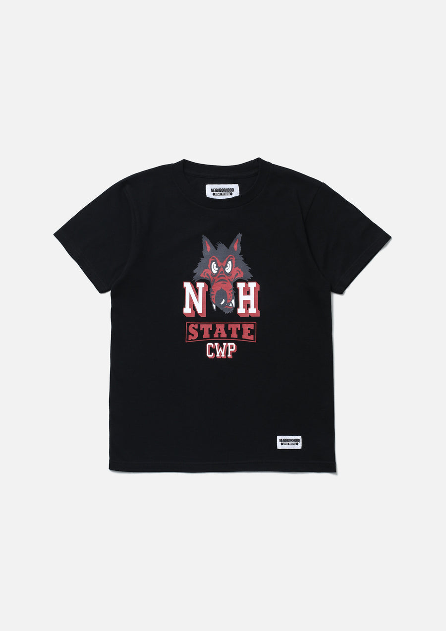 A short-sleeve T-shirt made of a 5.6oz heavyweight body. Graphic print on the front. A name tag is placed on the left hem.