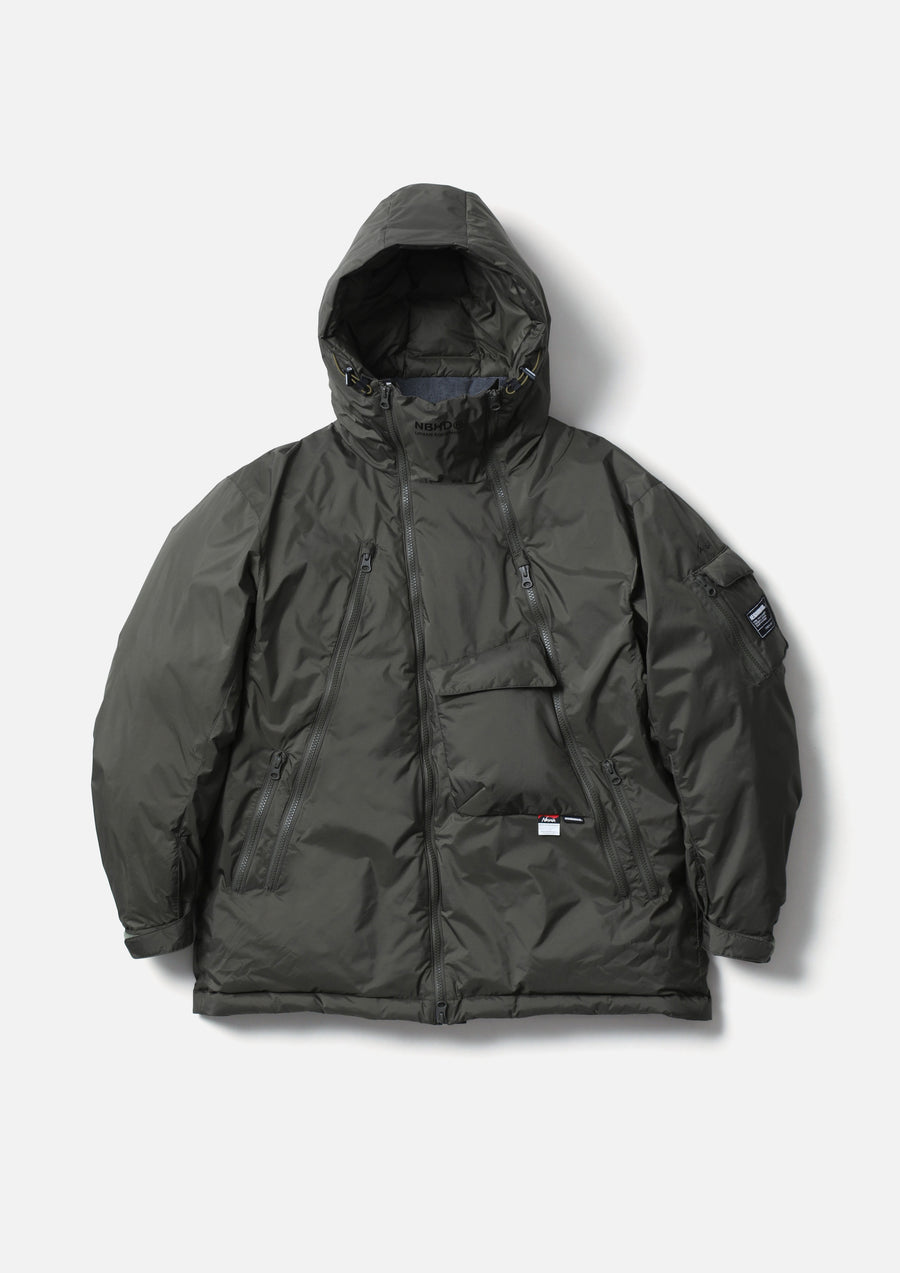 A collaborative item with NANGA, featuring a down jacket made from its original "Aurora-Tex®" fabric, offering both weather resistance and insulation. Filled with 180g of 700FP down. Equipped with utility pockets on the front, sides, and sleeves. Features a full-zip closure and a half-zip ventilation system. Logos from both brands are printed. Updated for the 242 season with refined sizing and pocket details.