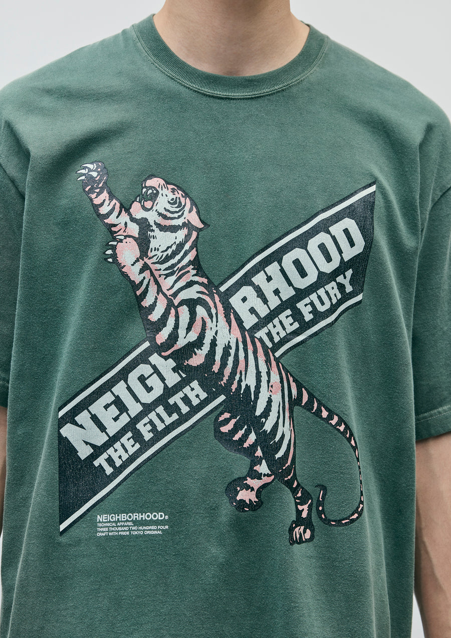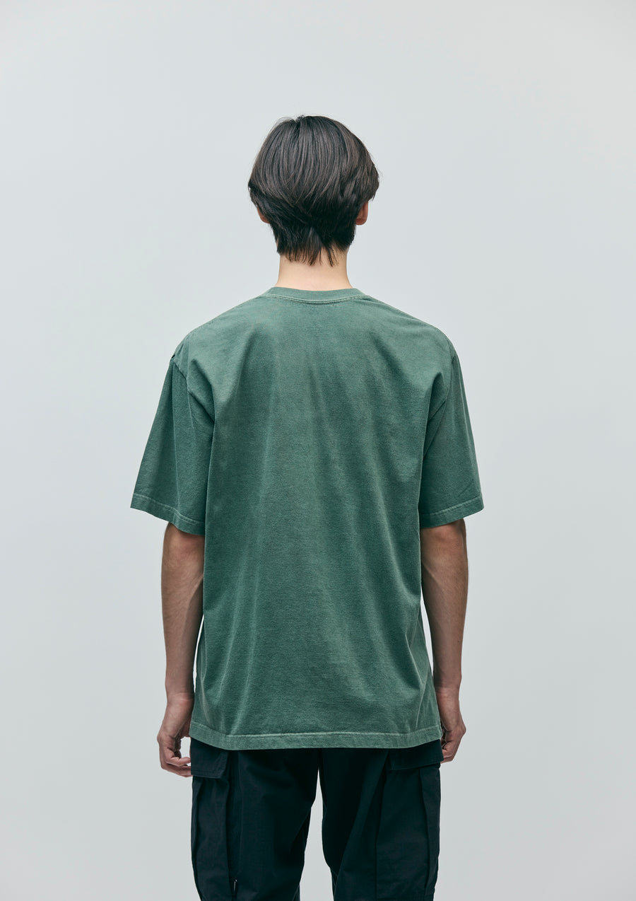 A short-sleeve T-shirt made of an original cotton jersey body, pigment-dyed for a unique finish. Crack print graphic on the front. One-wash finish.