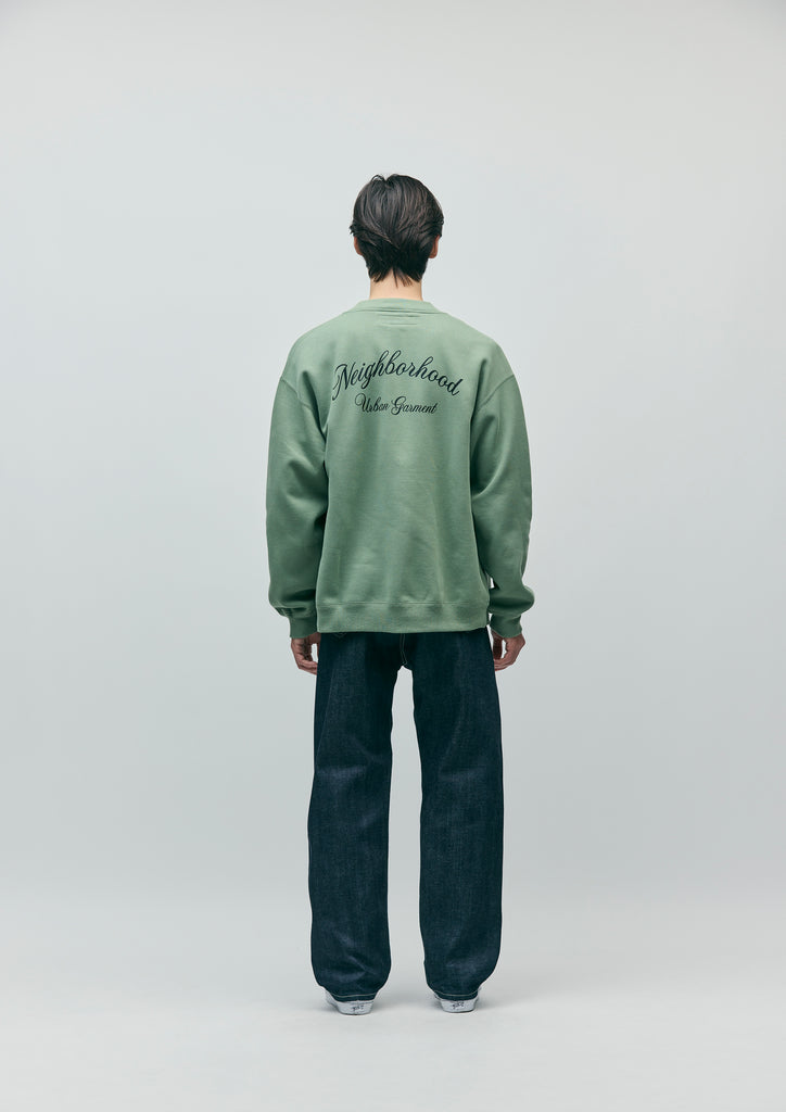 A deck jacket made from sulfur-dyed German cord cloth, featuring a natural fading effect over time. The collar is combined with a boa material. The fabric is durable yet moderately soft. The front closure includes an original buttoned placket and a zipper, while the cuffs have inner ribbed detailing. The hem features an adjustable drawcord. The back is printed with a distressed-style logo. A brand tag is attached to the side seam.