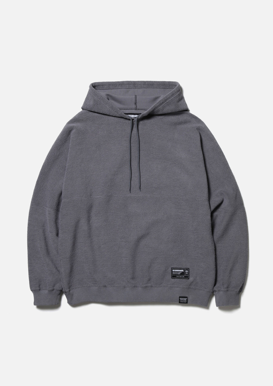 A reversible pullover hoodie utilizing the pile side of tightly knit fleece-backed fabric. Designed with distinctive paneling. Features a logo print on the jersey side and a brand tag on the pile side. Includes a brand tag inserted in the cuff.