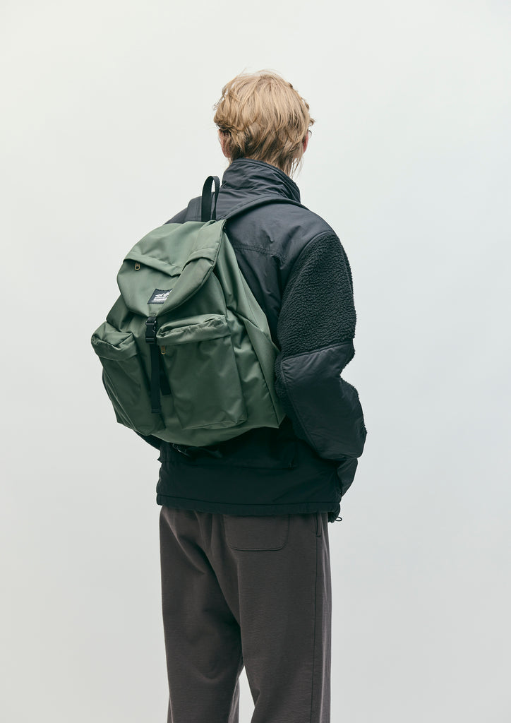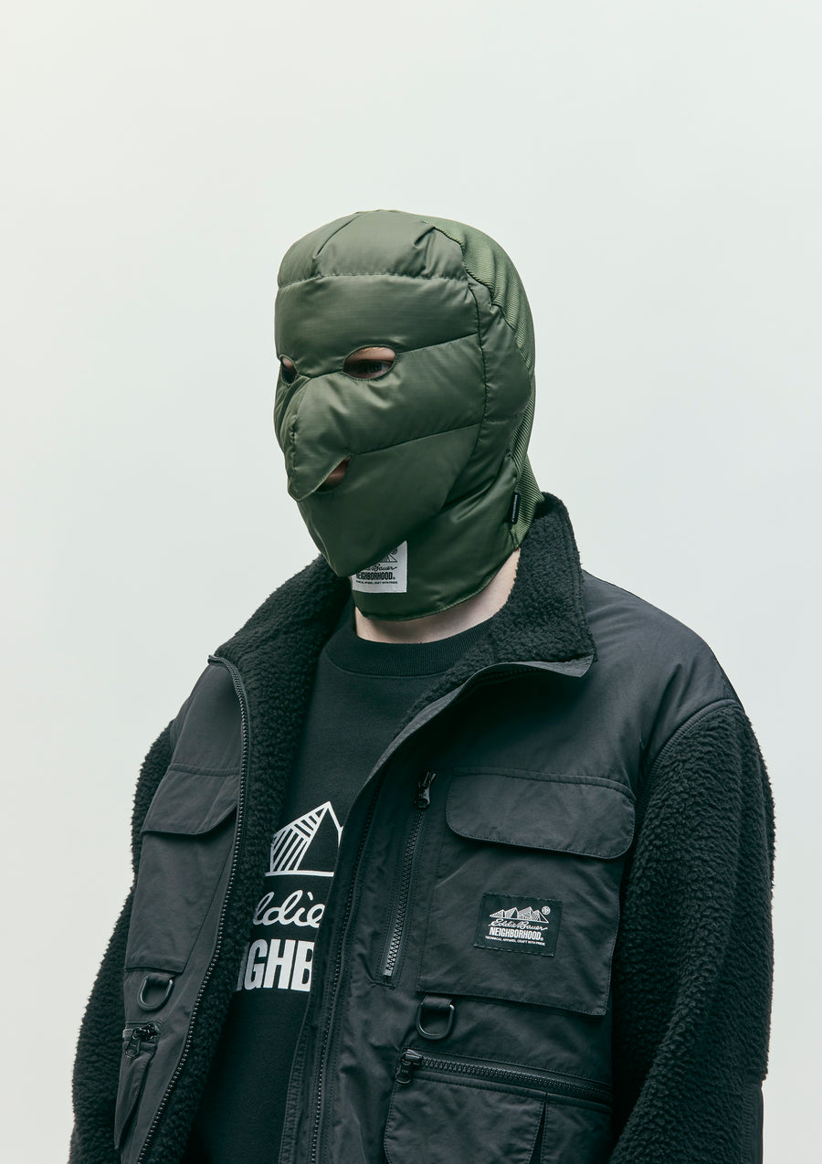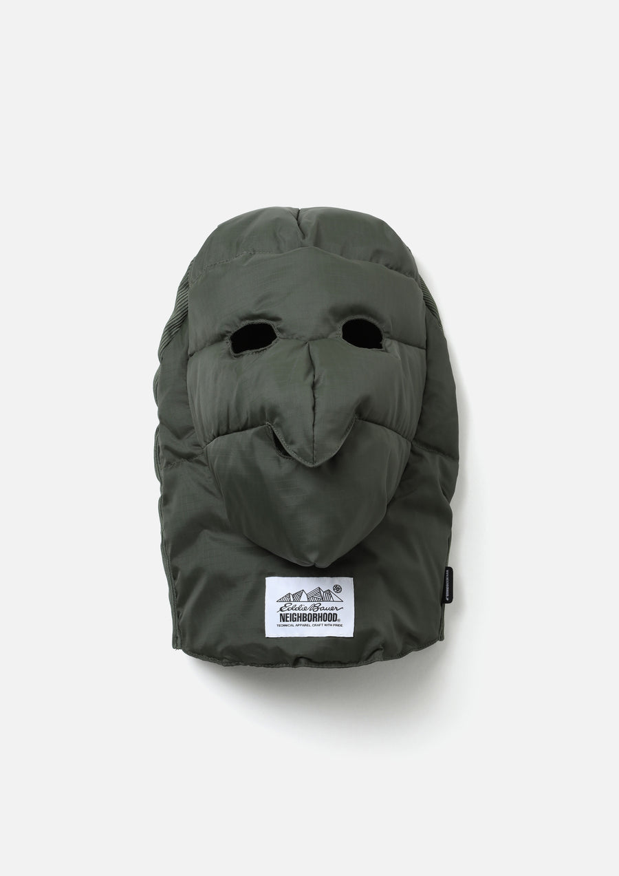 A down mask made from nylon ripstop fabric with firmness, resilience, and a subtle sheen. Ribbed material with excellent elasticity is used on the back. Finished with a collaboration name tag. A joint work item with Eddie Bauer, the outdoor brand founded in Seattle, USA in 1920.