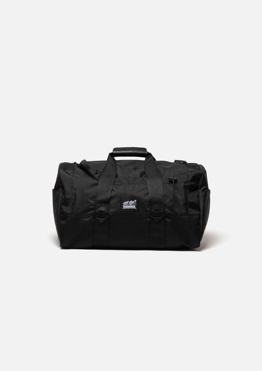 A Boston bag made from heavyweight, durable nylon oxford fabric. Designed for 2-way use, it can be carried by hand or worn over the shoulder with the included strap. A collaboration name tag is placed on the front. A joint work item with Eddie Bauer, the outdoor brand founded in Seattle, USA in 1920.