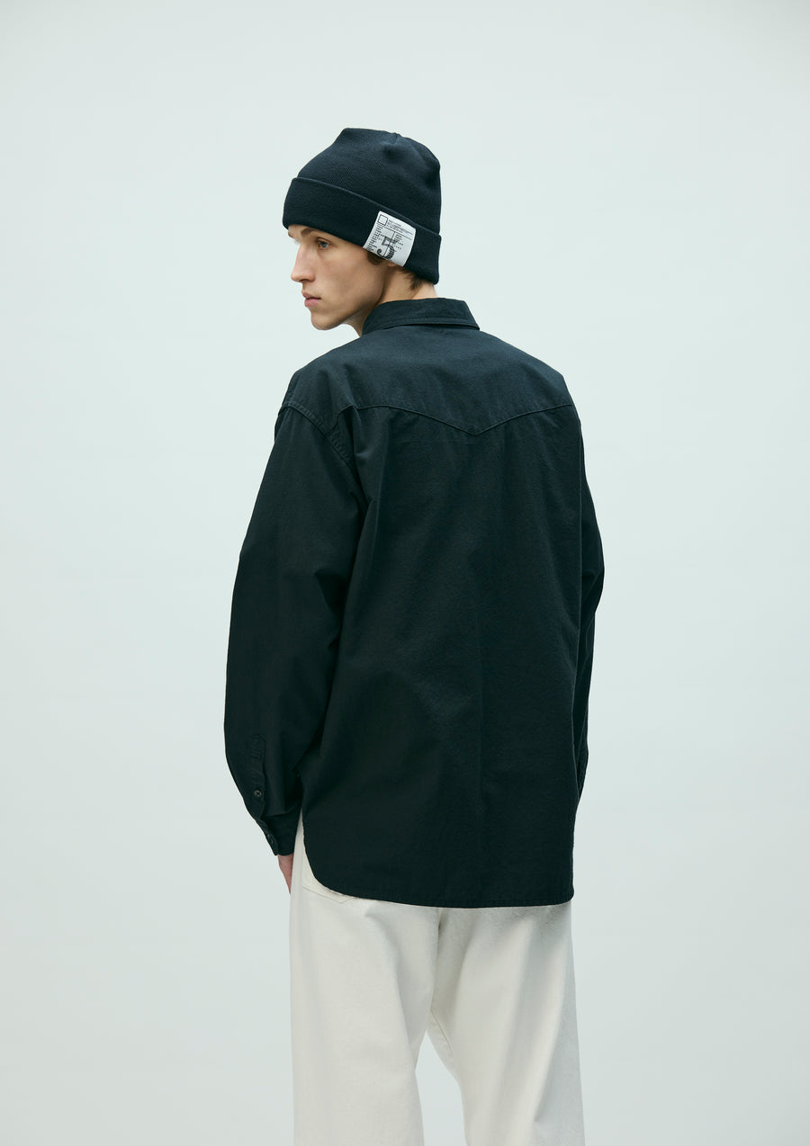 Western shirt made from lightweight cotton canvas with a washer finish that gives it a natural crinkled texture. Defined by its rounded yoke and classic detailing. Finished with original buttons. Comes with a brand tag exclusive to the BLACK & WHITE series, based on a uniform concept, along with a matching color size label and a woven side label. Completed with a one-wash finish.