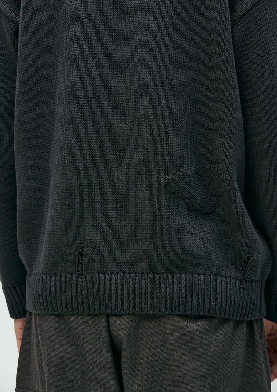 Savage crewneck knit crafted in 5-gauge jersey using cotton yarn. Designed with damage detailing expressed through drop-needle holes and reverse-side knitting. Finished with a brand tag exclusive to the Custom Crafted line at the left hem.