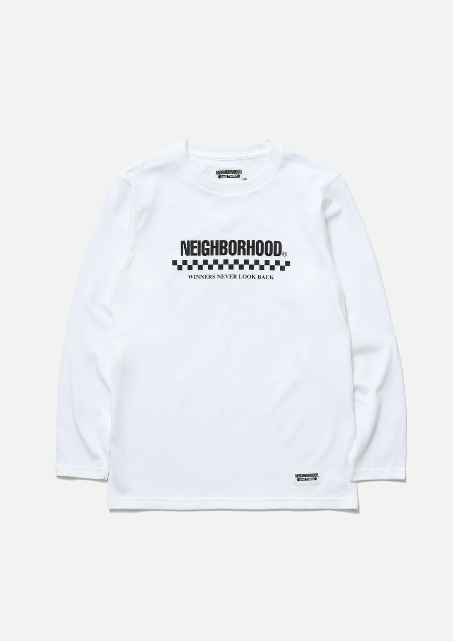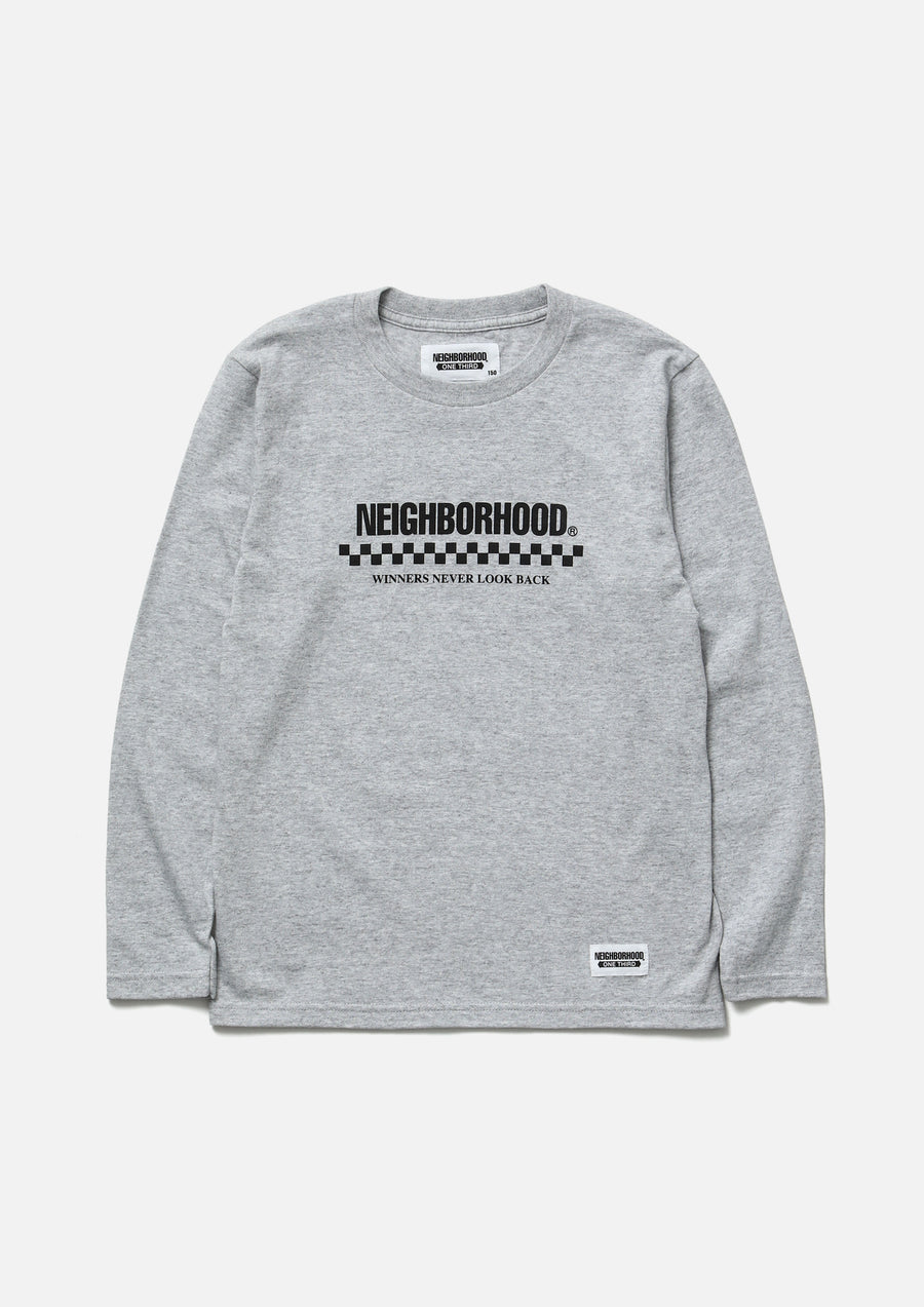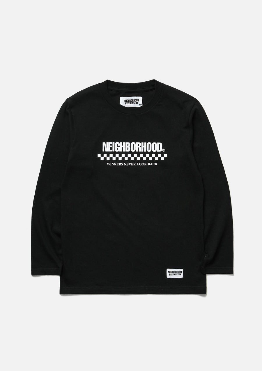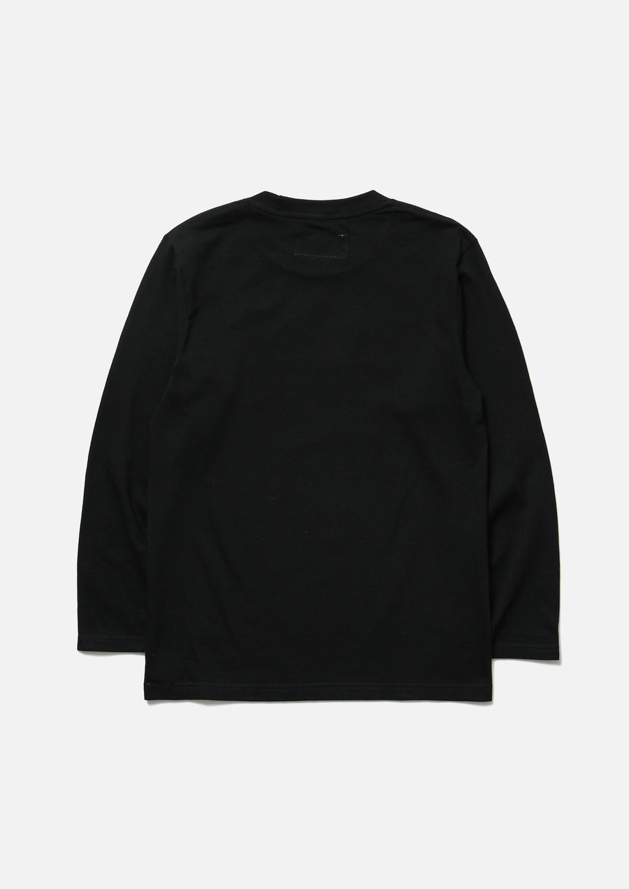 Long sleeve T-shirt made of 5.6oz heavyweight body. Logo printed on the front. Brand tag at the left hem.