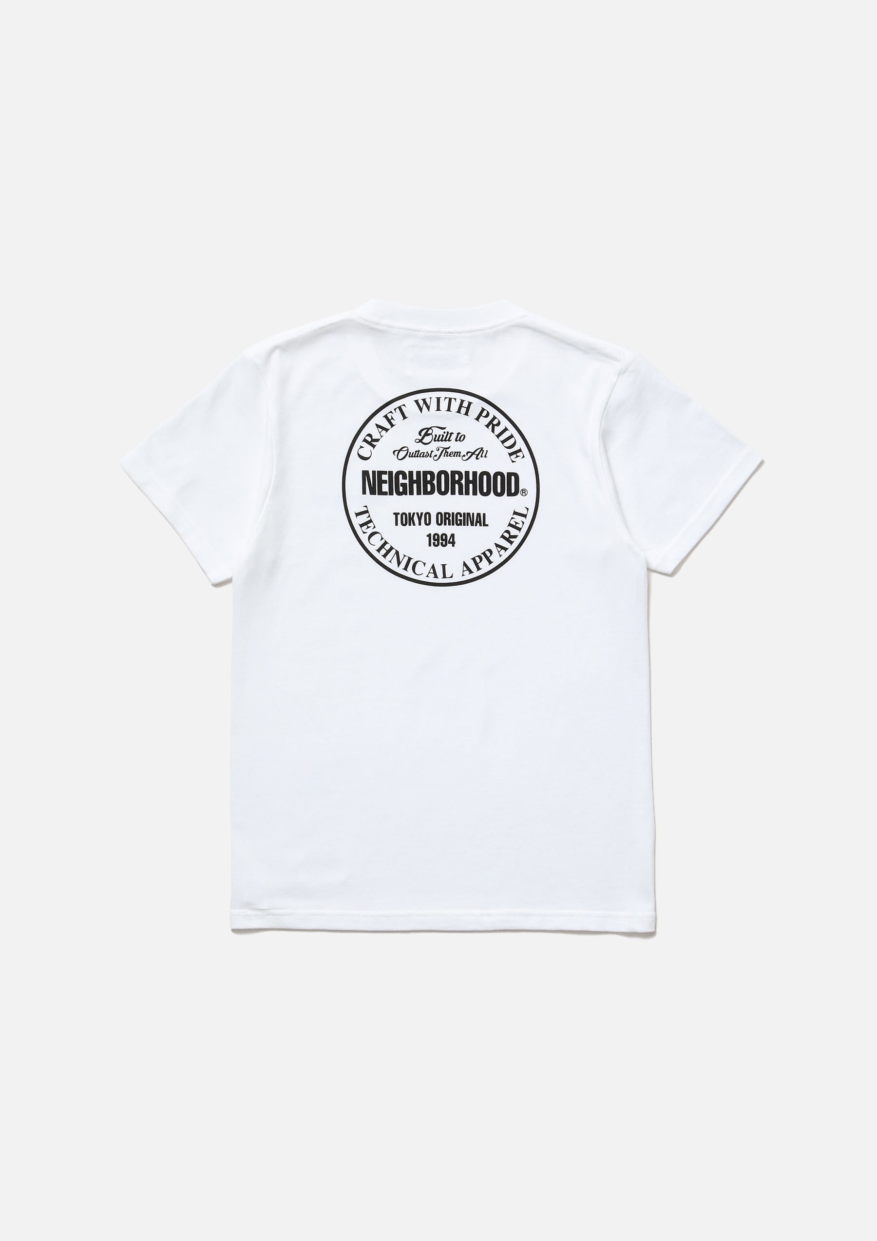 Short sleeve T-shirt made of 5.6oz heavyweight body. Logo printed on the left chest and back. Brand tag at the left hem.