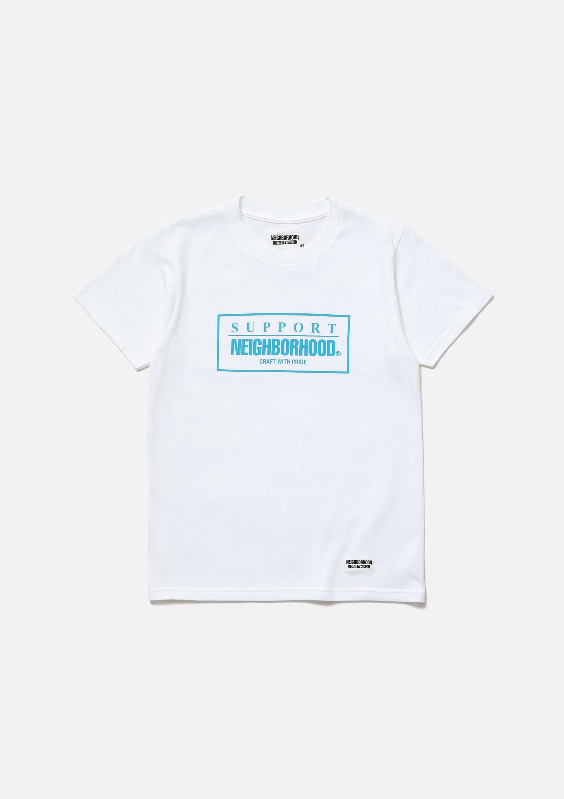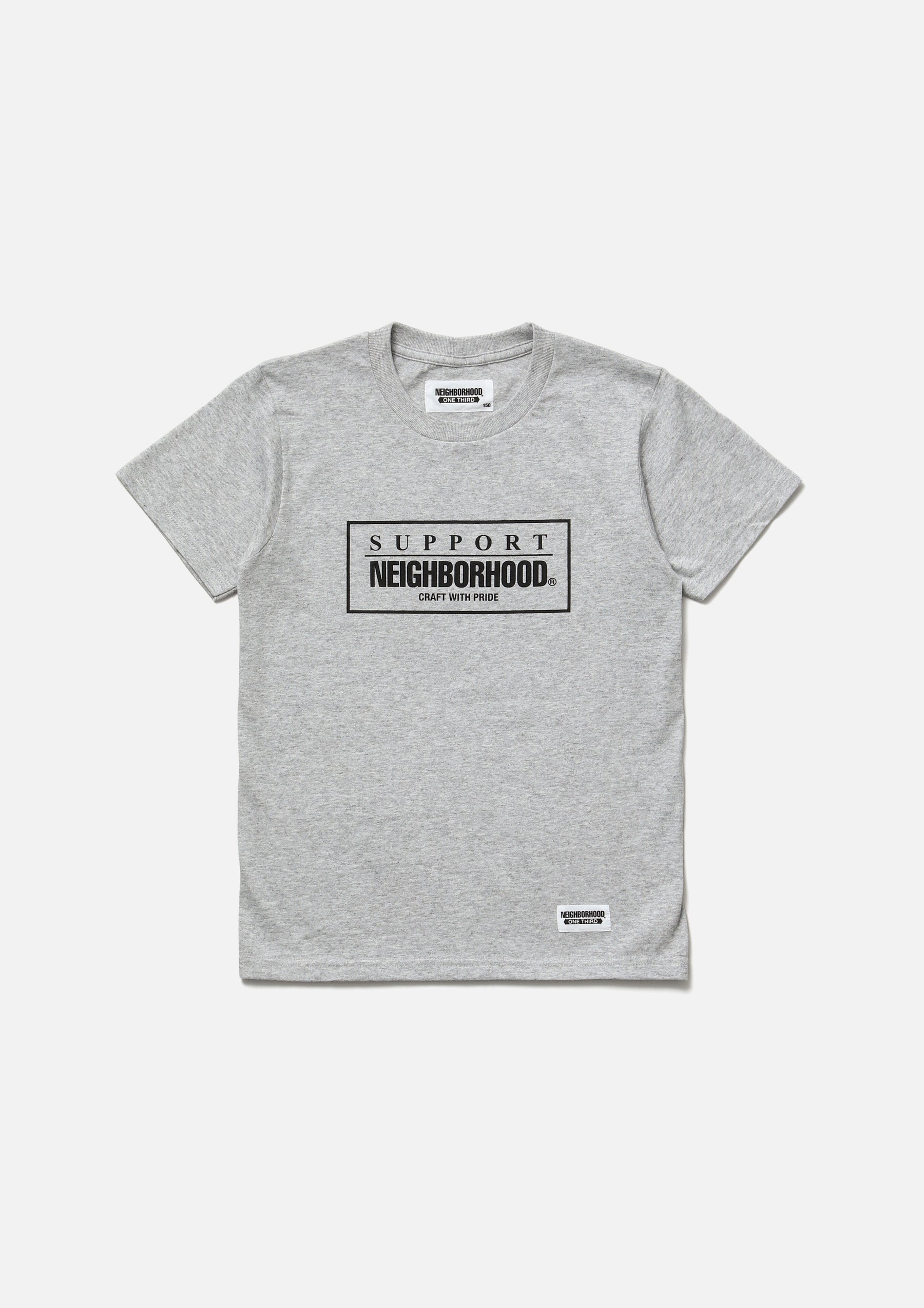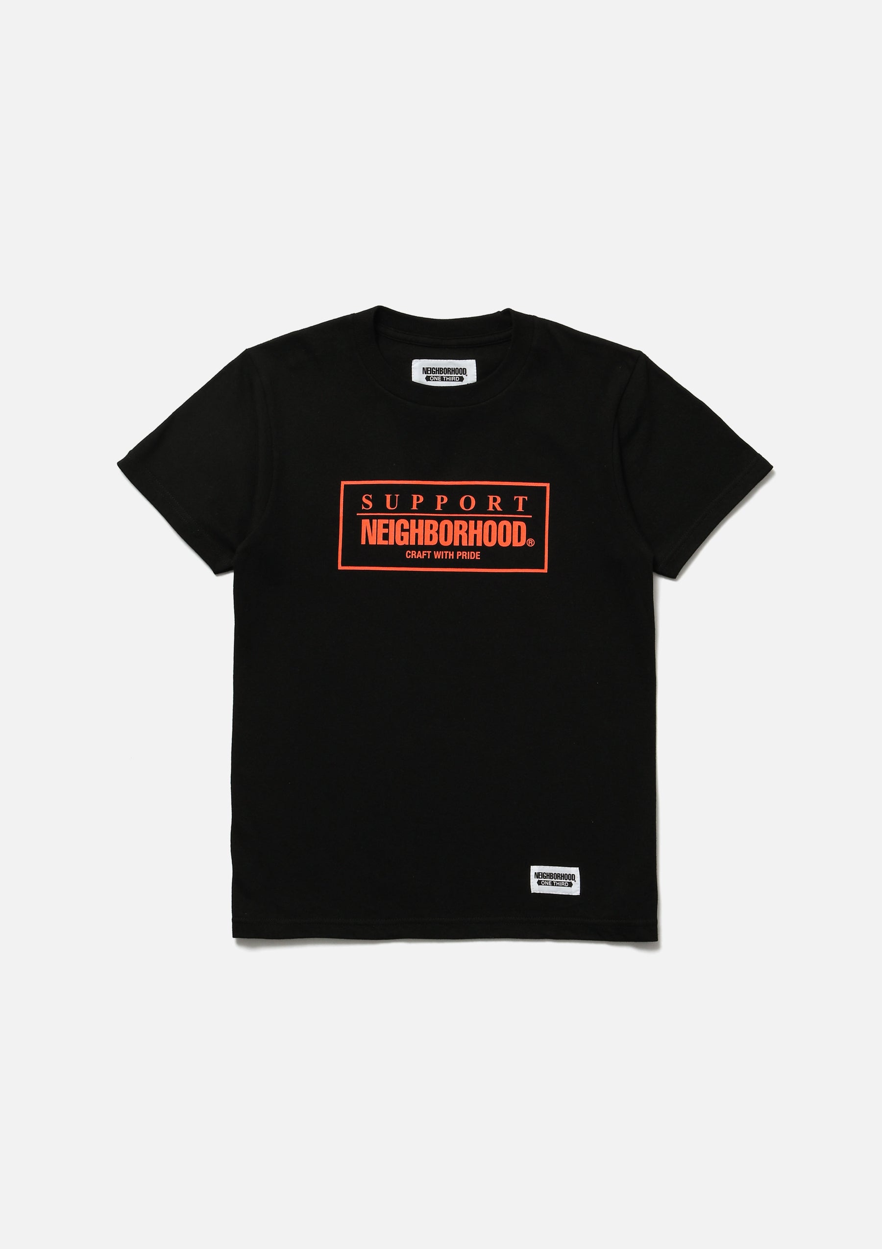 Short sleeve T-shirt made of 5.6oz heavyweight body. Logo printed on the front. Brand tag at the left hem.