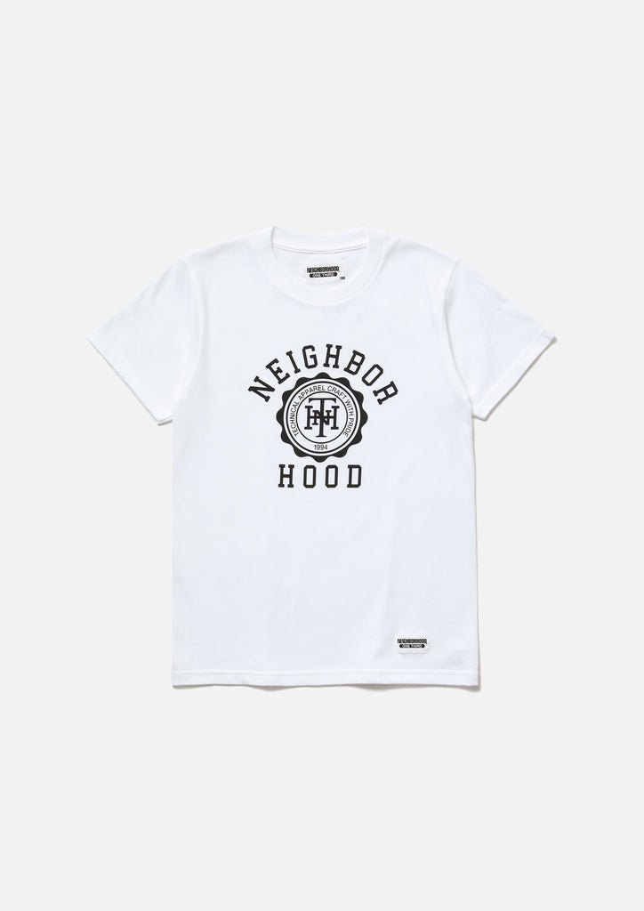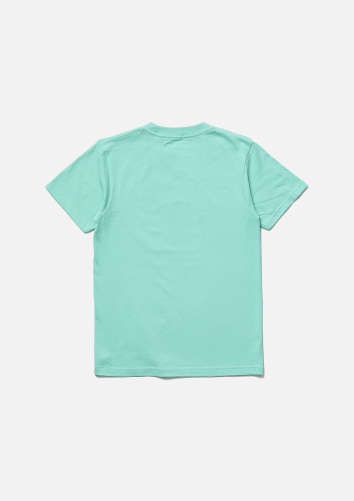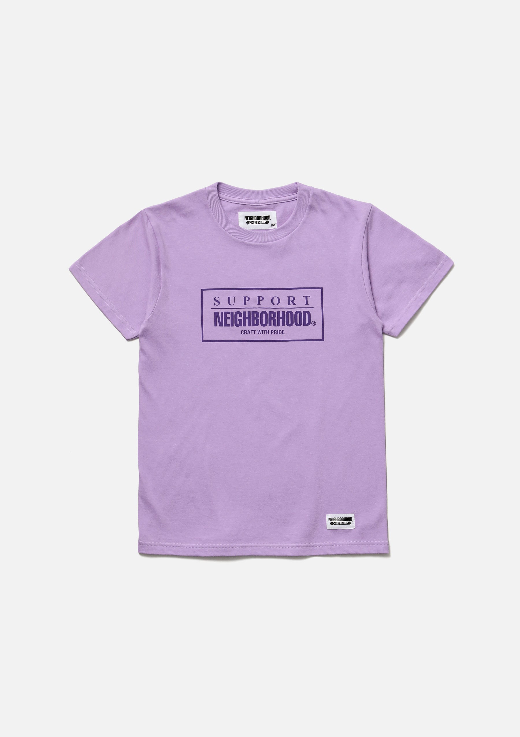 Short sleeve T-shirt made of 5.6oz heavyweight body. Logo printed on the front. Brand tag at the left hem.