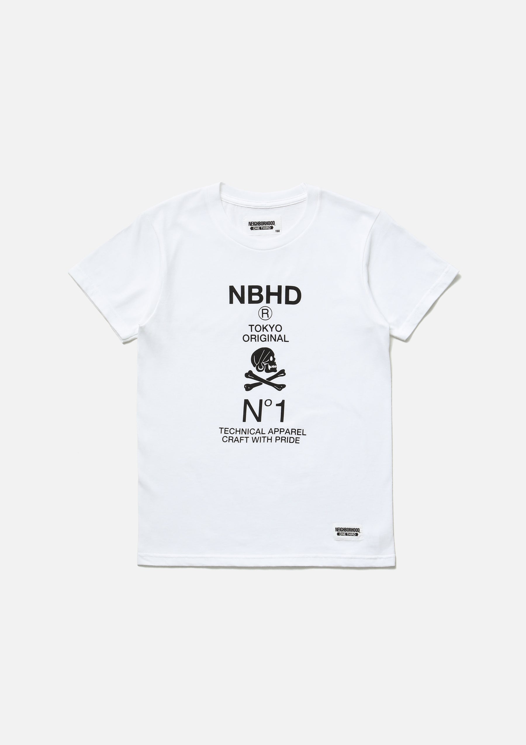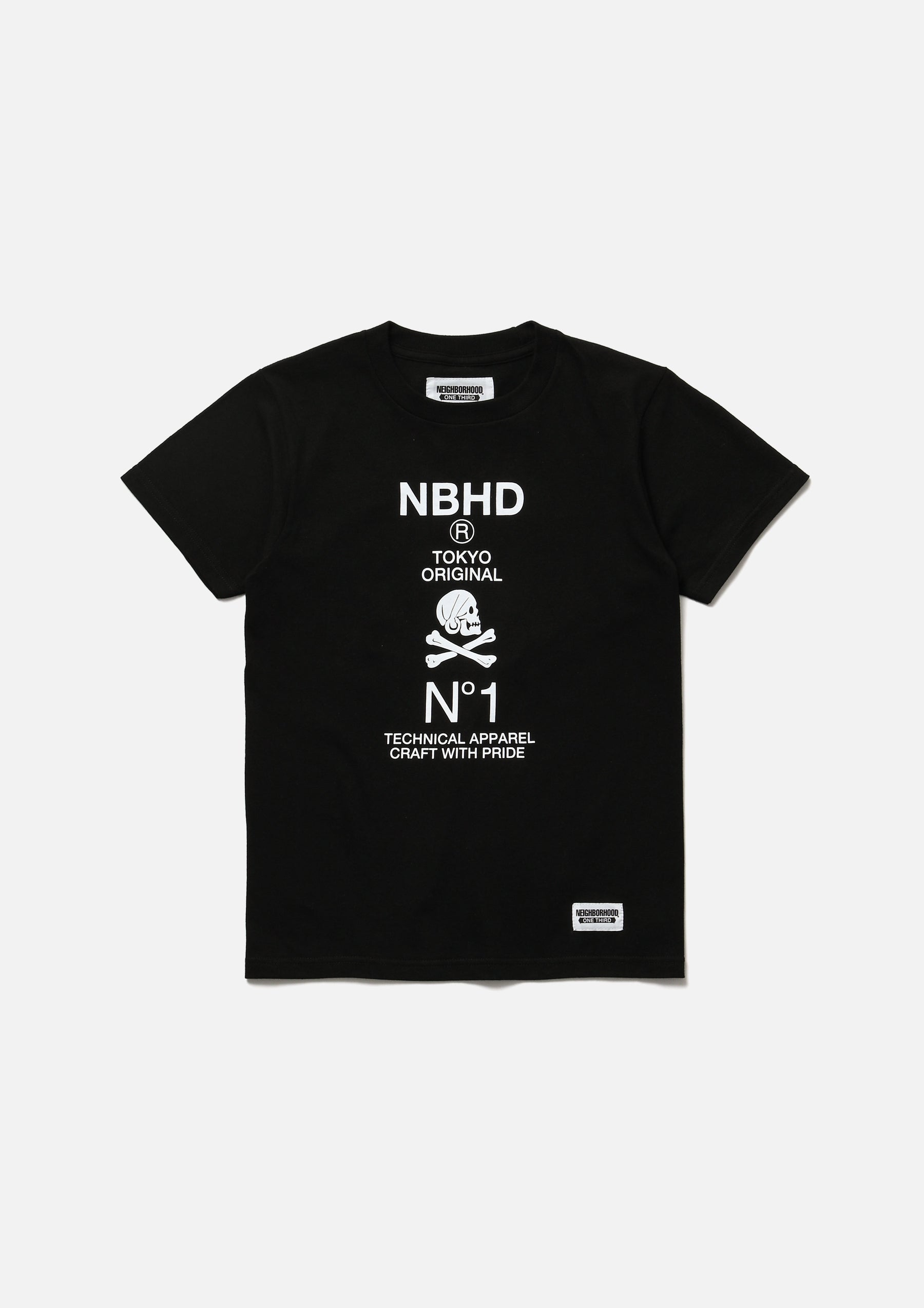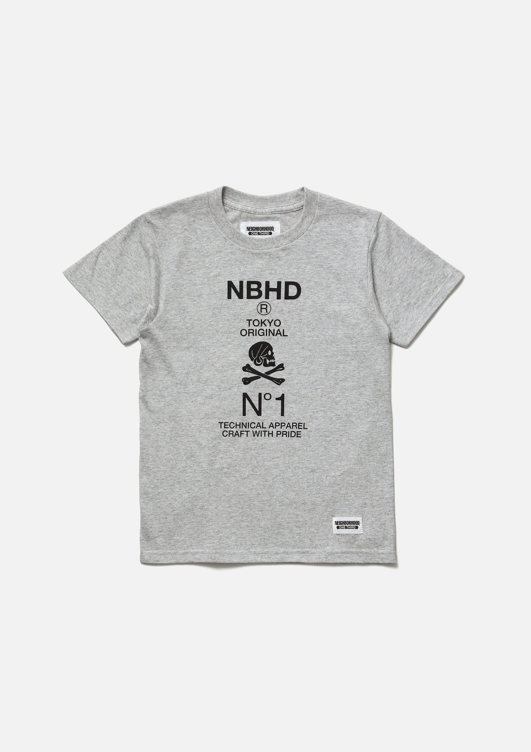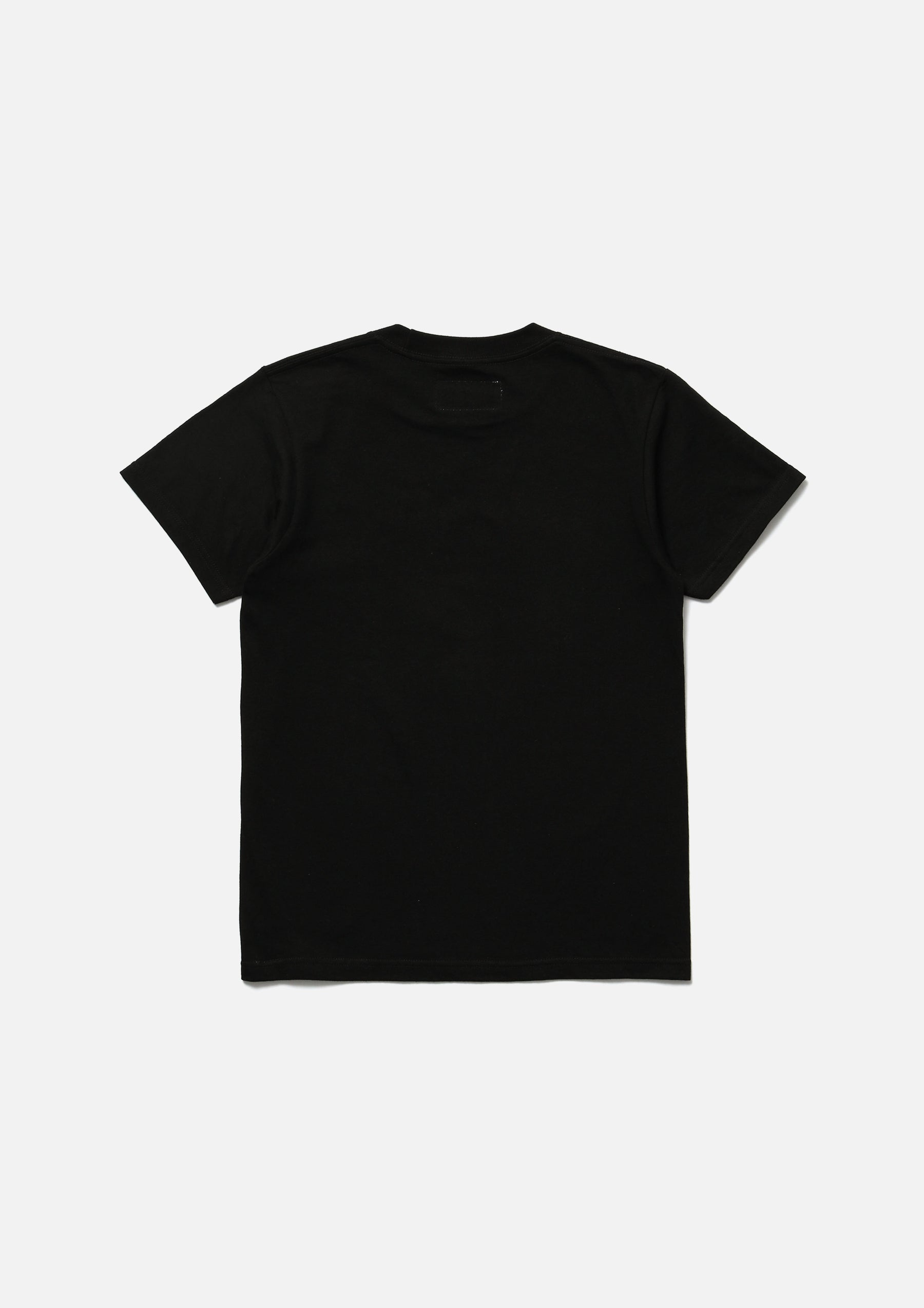Short sleeve T-shirt made of 5.6oz heavyweight body. Logo printed on the front. Brand tag at the left hem.