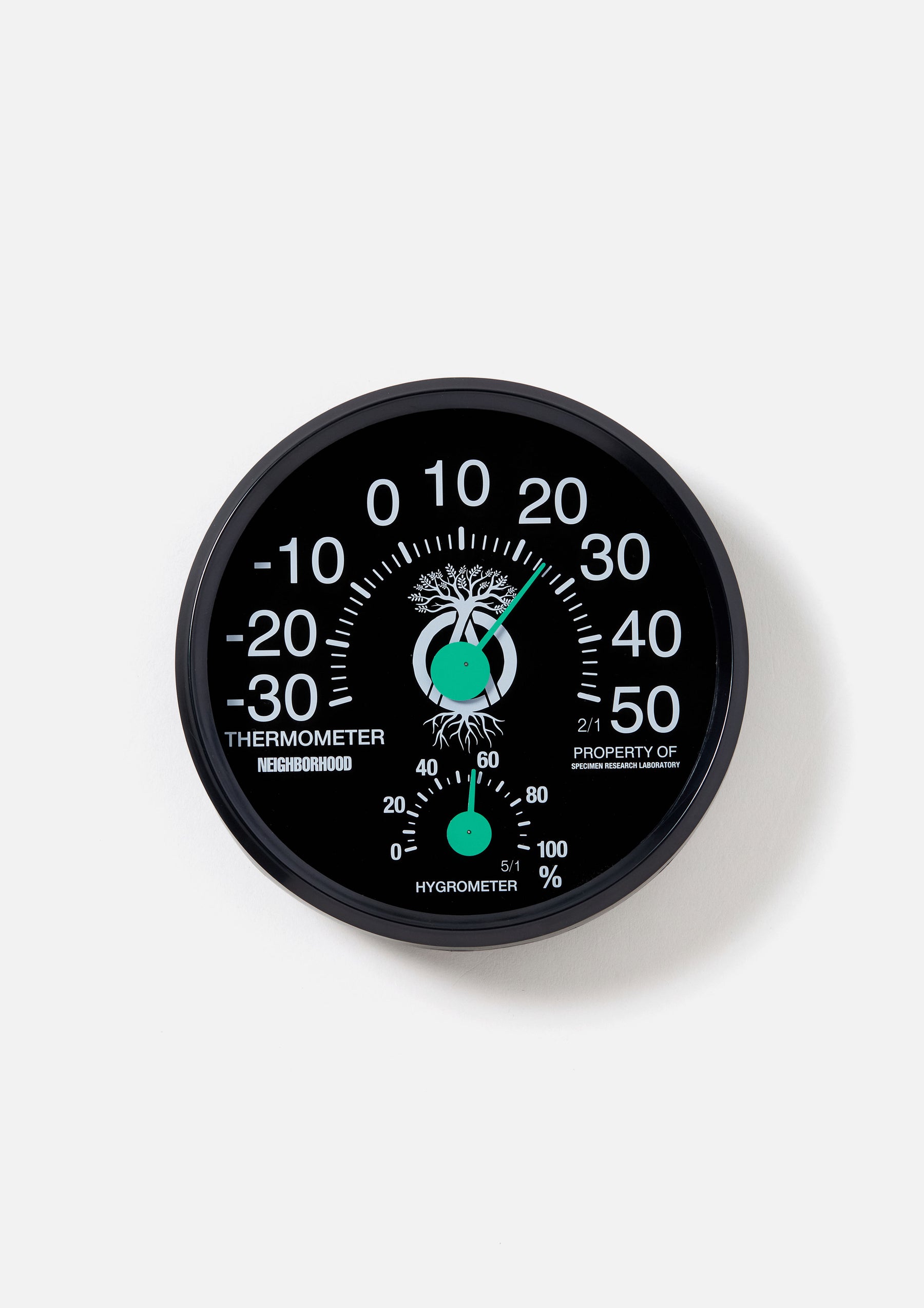 Circle-shaped thermo-hygrometer with original graphic on the dial side.