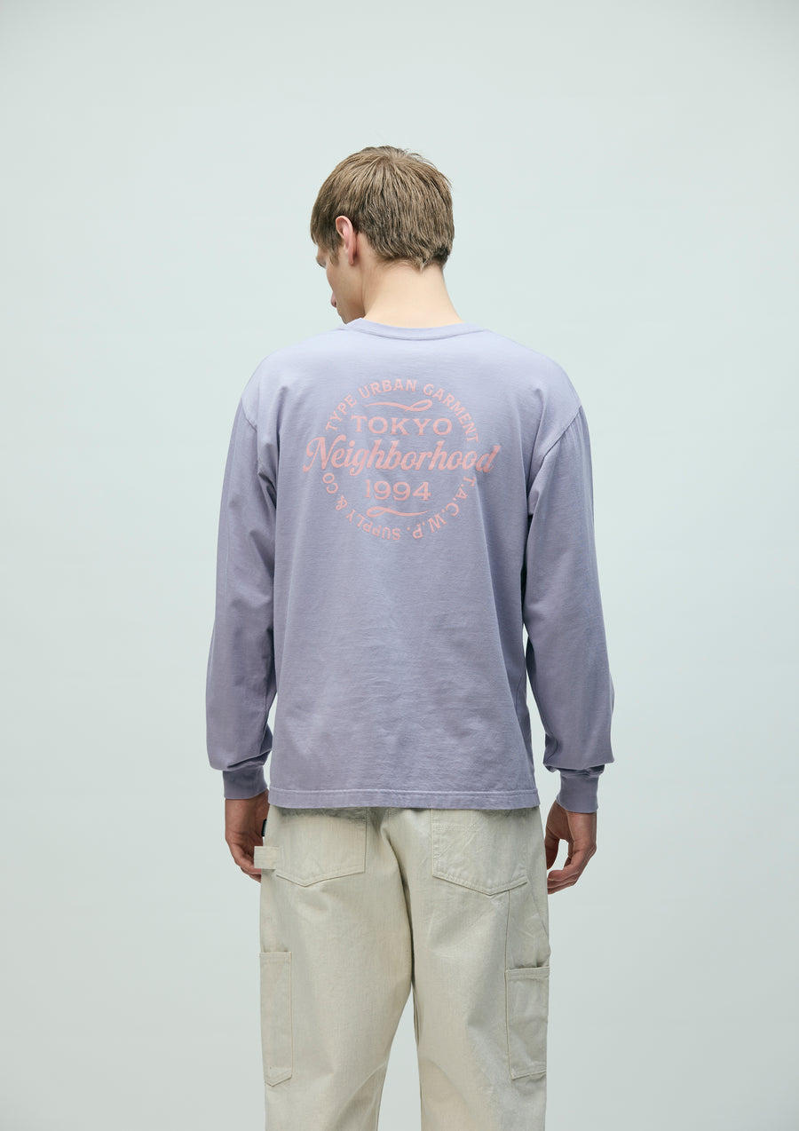 Long-sleeve T-shirt made from an original cotton jersey body. Features printed graphics on the left chest and back. Completed with a one-wash finish.