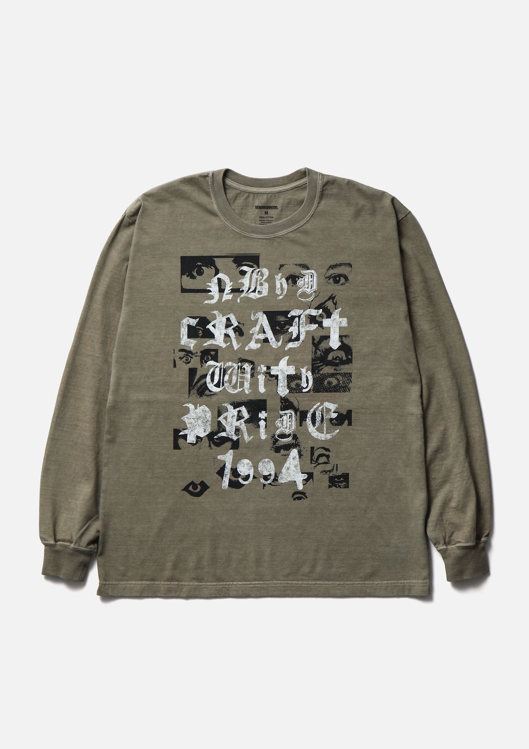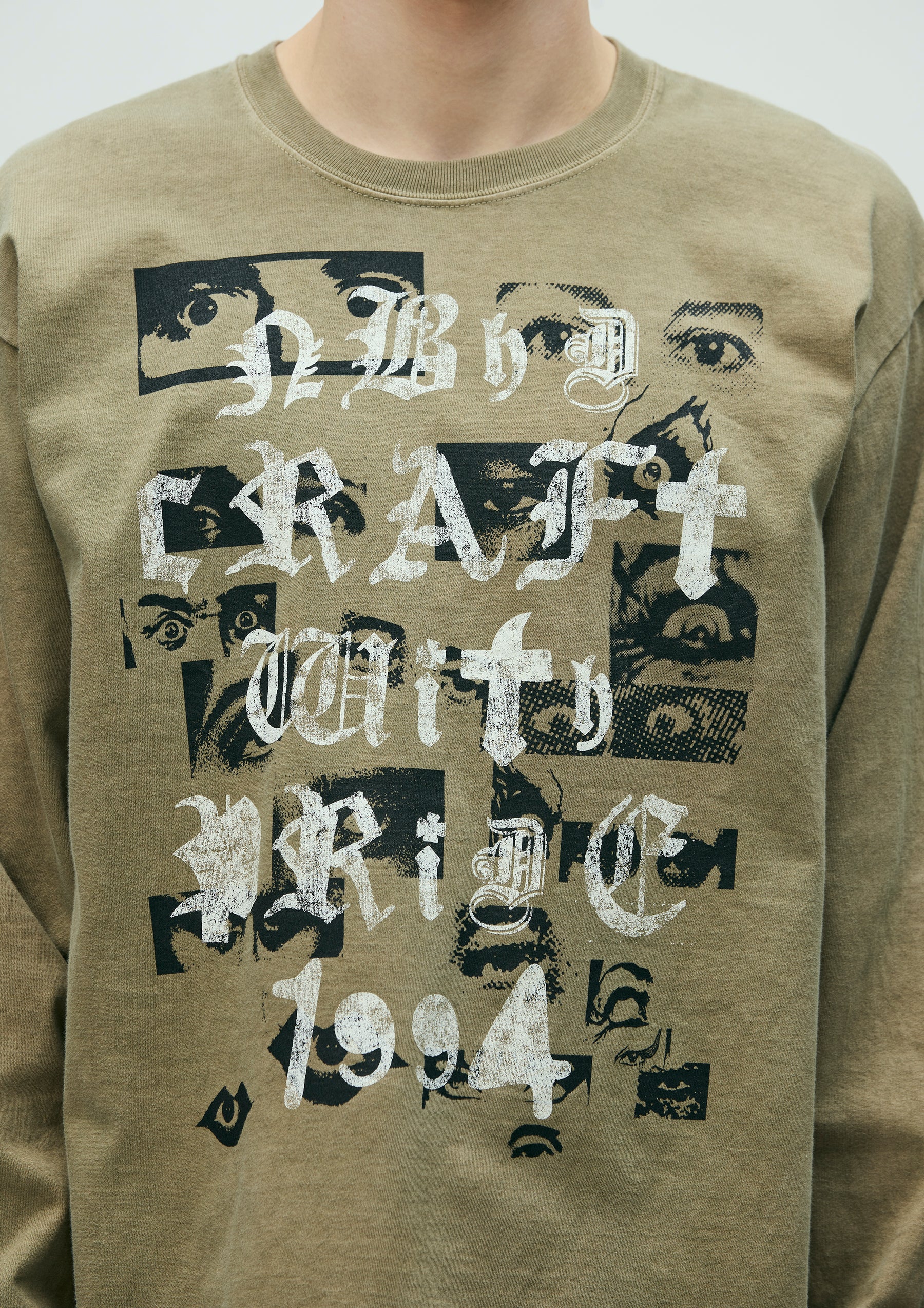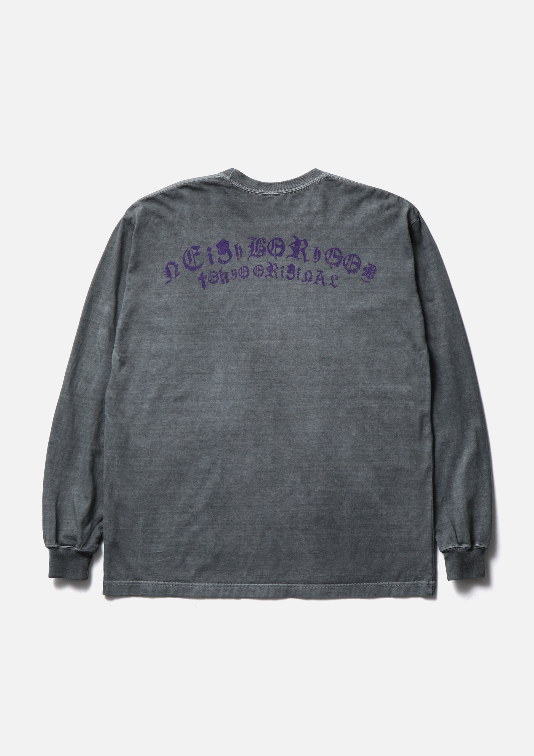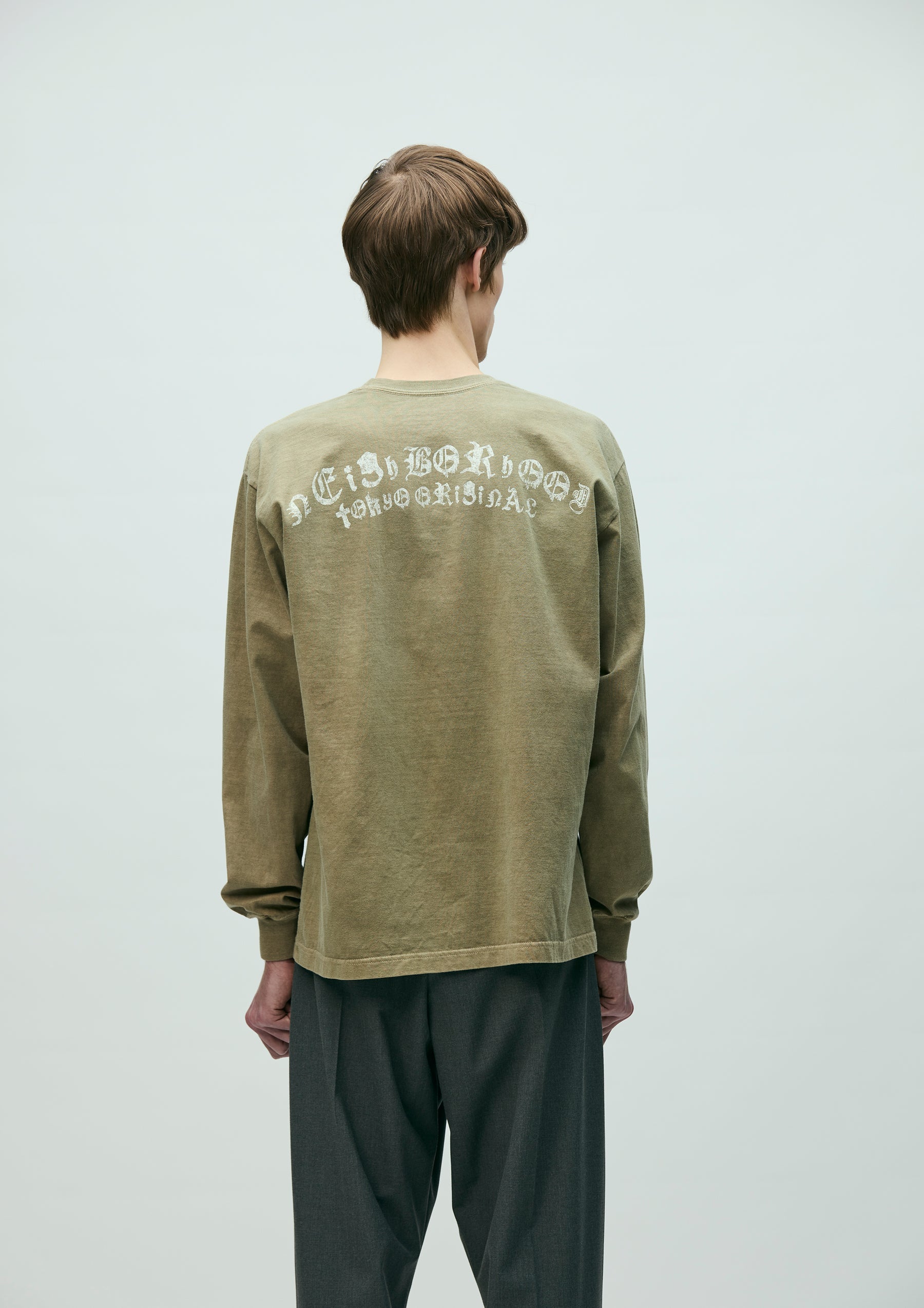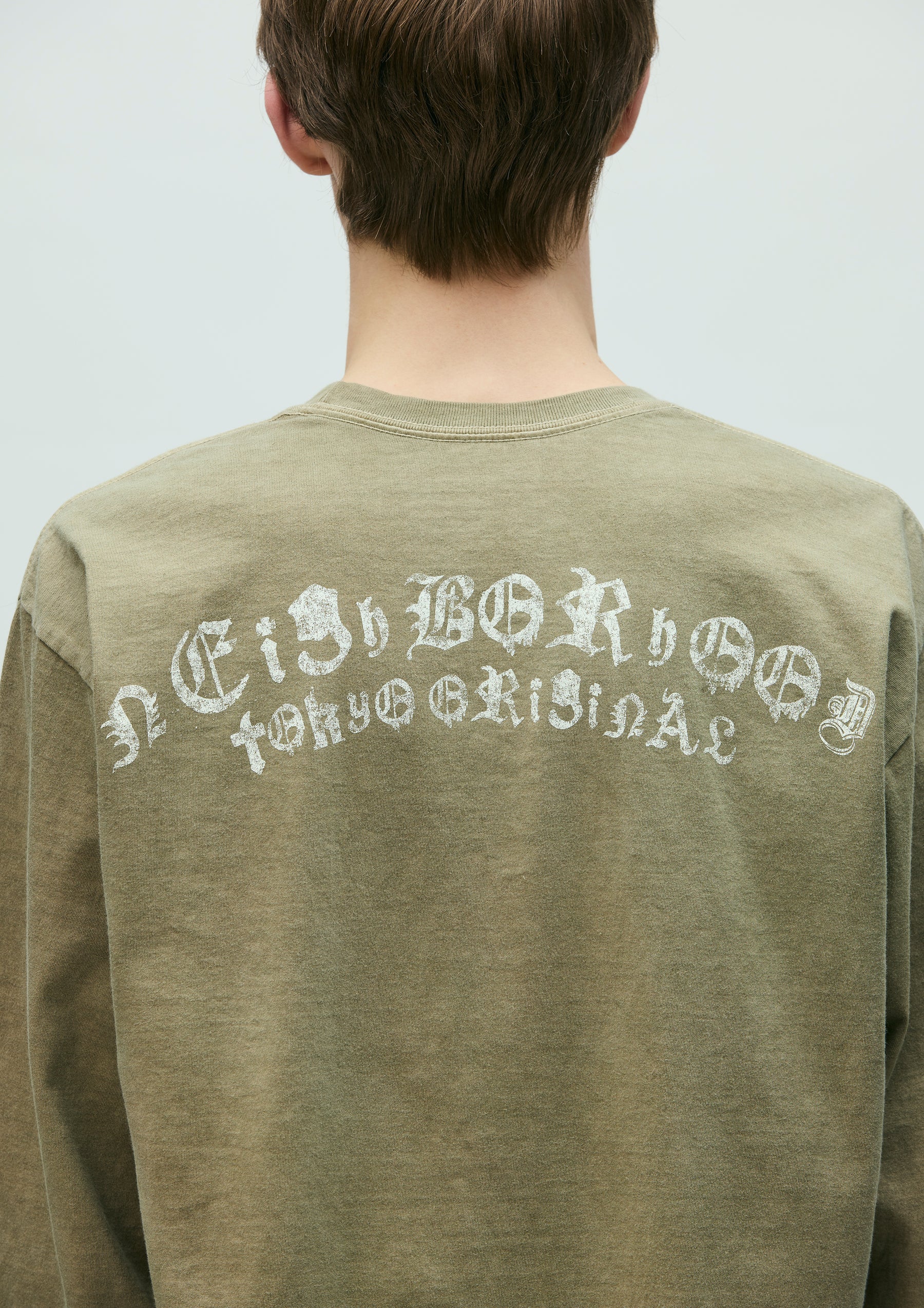 Long-sleeve T-shirt made from an original cotton jersey body, finished with a pigment-dye treatment. Features printed graphics on the front and back. Completed with a one-wash finish.