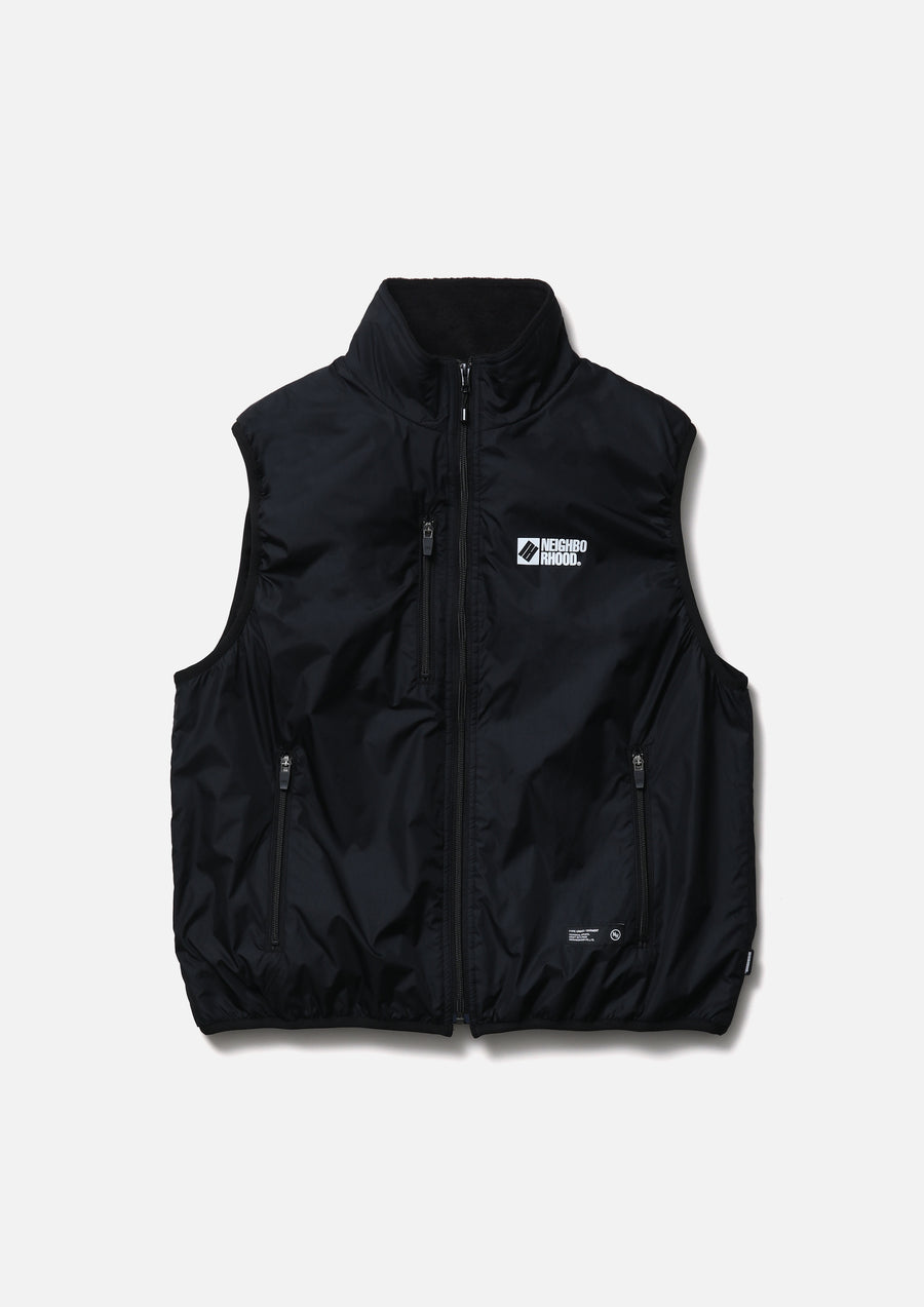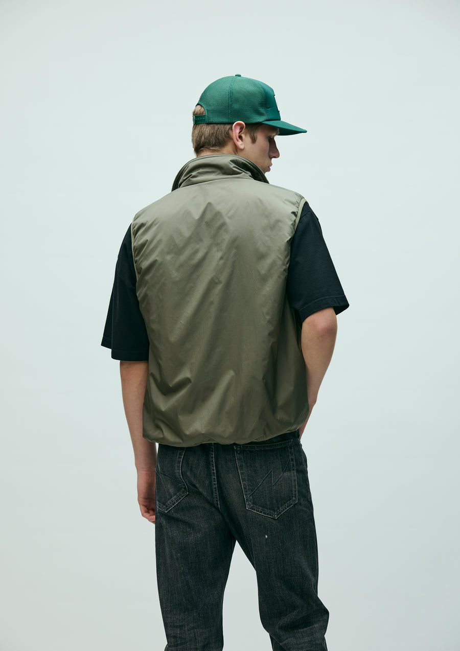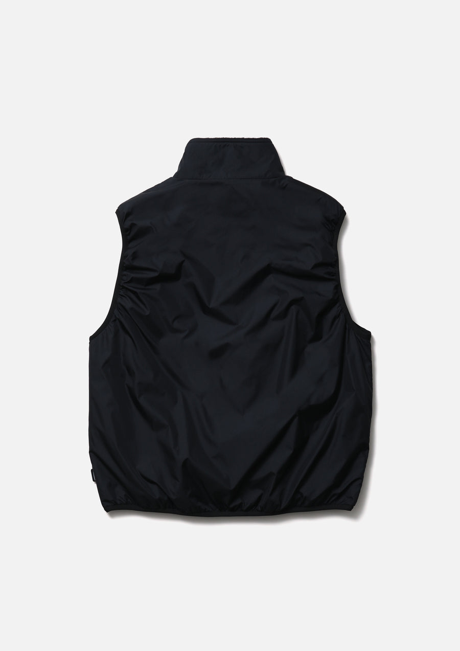 Softshell Vest made from high-density nylon taffeta that combines a crisp structure with nylon’s soft texture and water repellency. Features three zip pockets on the front, with knit piping at the armholes and hem. A logo is printed on the left chest. A brand tag is placed at the left hem, and a woven side label is attached at the side seam. Lined with anti-pilling fleece for added comfort.